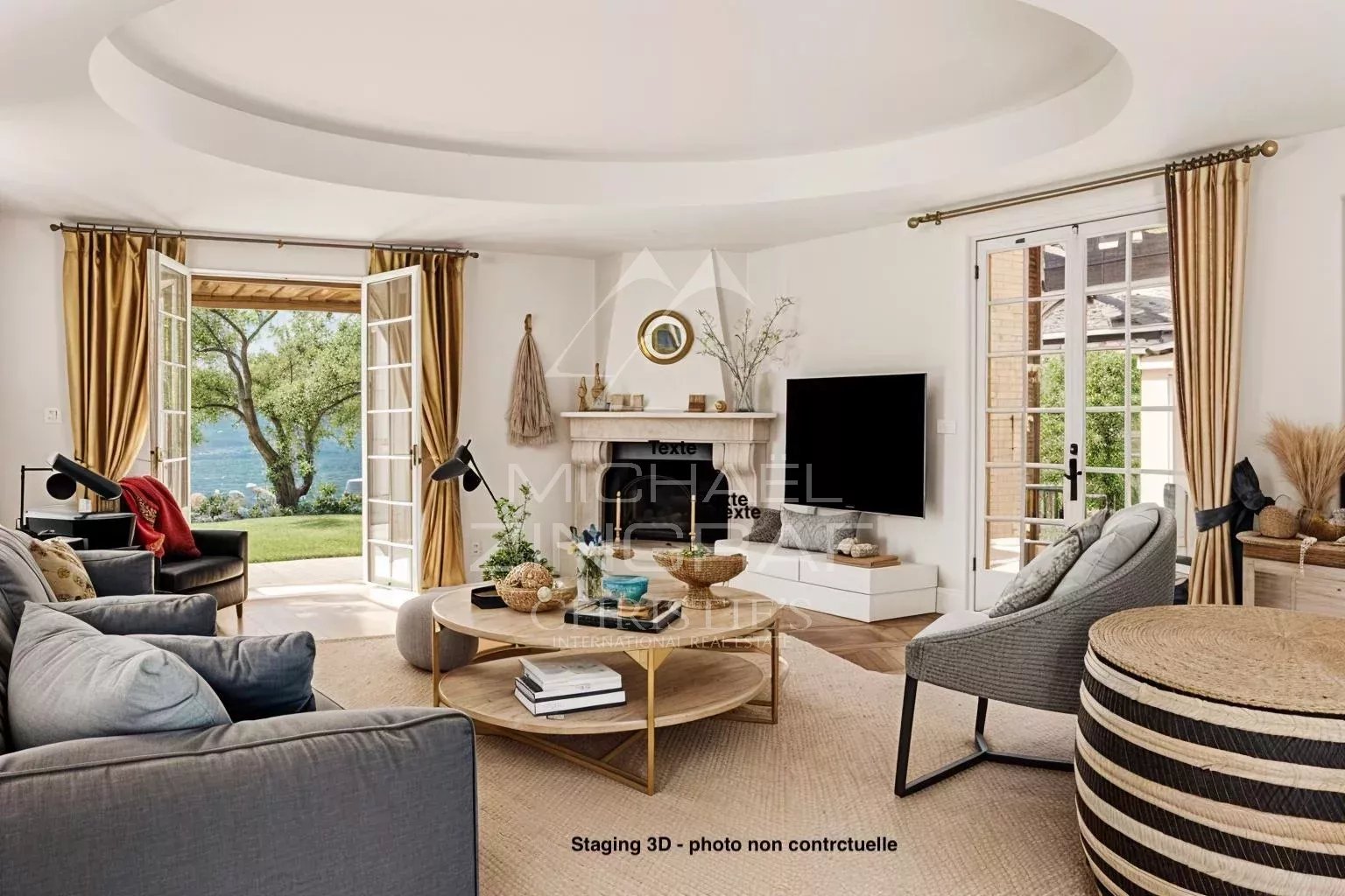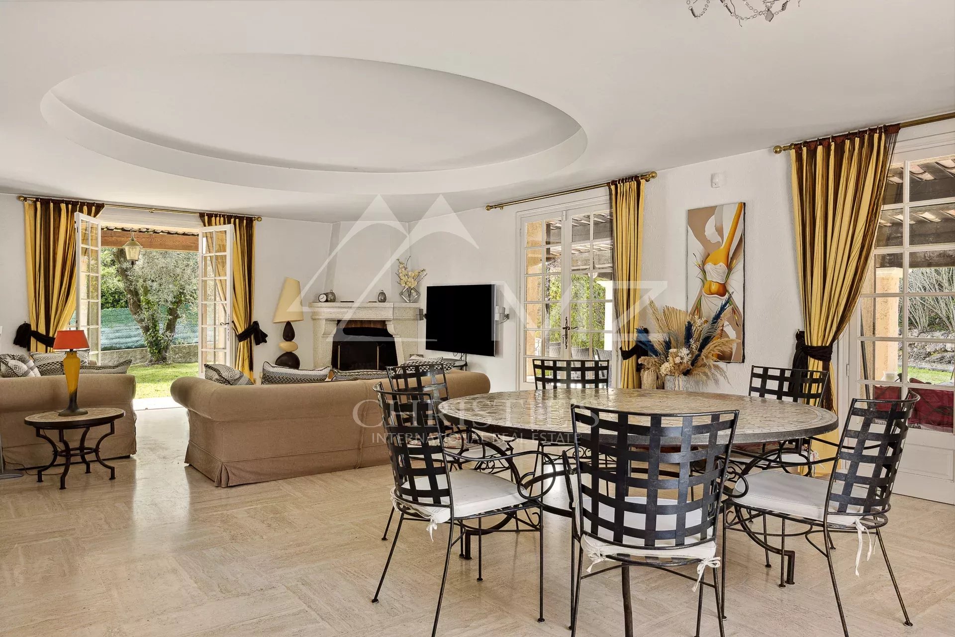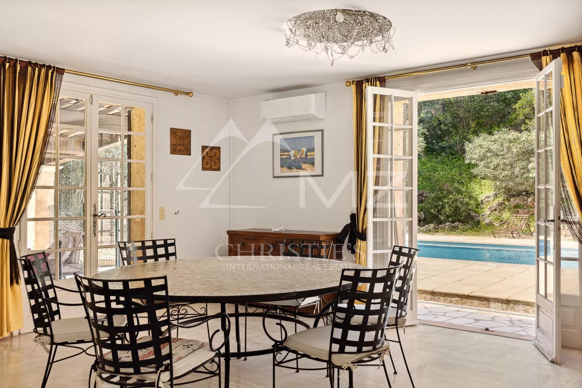 Emplacement recherché et privilégié, sur la colline de Super Cannes, pour cette jolie villa provençale édifiée au milieu de son terrain parfaitement plat d'environ 2000 m2. Grâce à sa triple exposition, la propriété jouit d'un ensoleillent optimal tout au long de l'année et offre d'agréables perspectives. Le rez-de-chaussée comprend une double réception aux volumes généreux s'ouvrant sur une large terrasse couverte et la piscine, ainsi qu'une cuisine équipée. Toujours de plain pied, un appartement deux pièces qui pourrait être transformé en une suite de Maître. A l'étage, grande chambre de Maitre avec une salle de bains attenante, et deux autres chambres partageant une salle de douche. Garage fermé, abri pour deux voitures. Parking. Piscine 10x5. Gros potentiel de rénovation. Calme absolu !