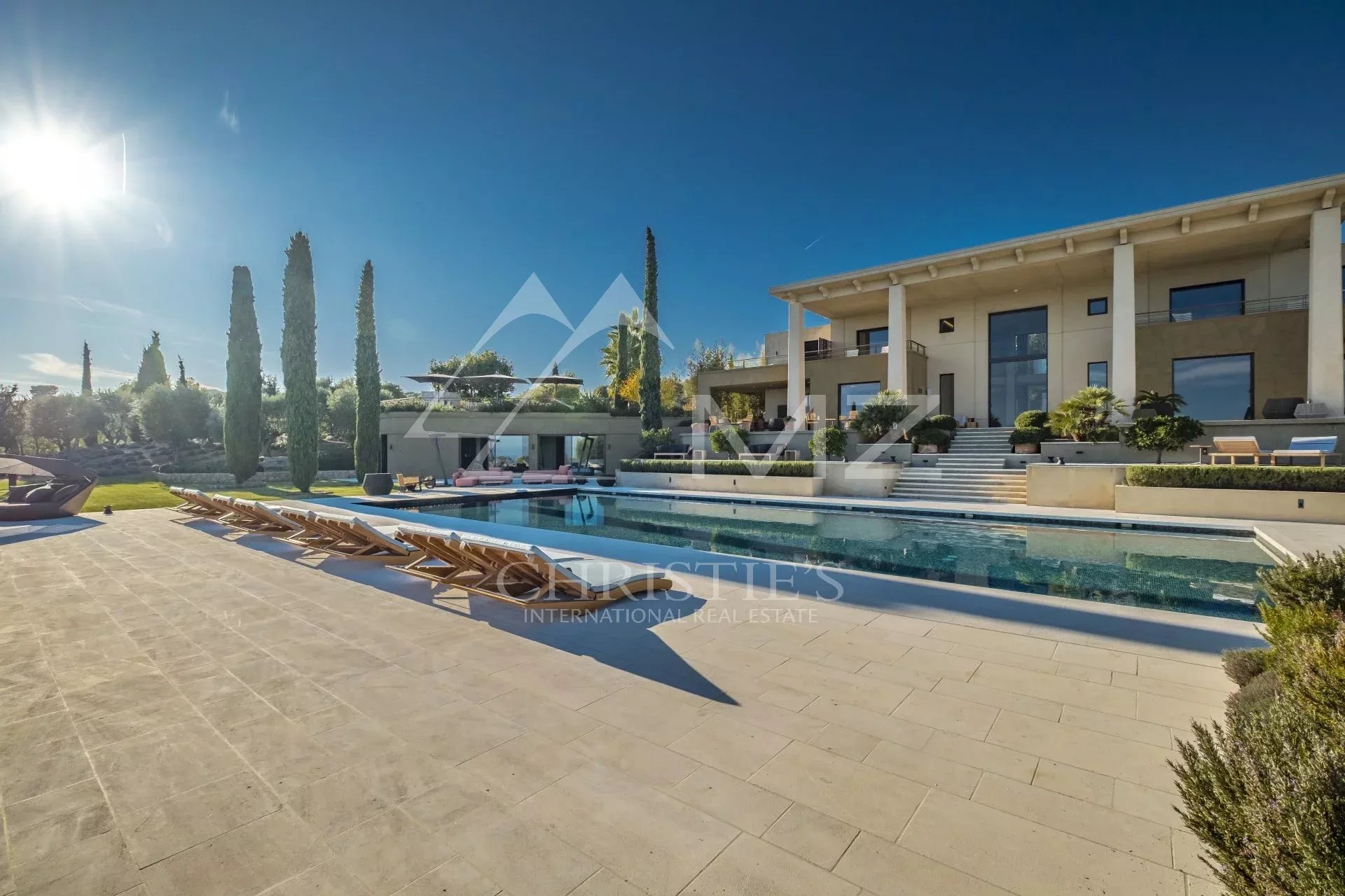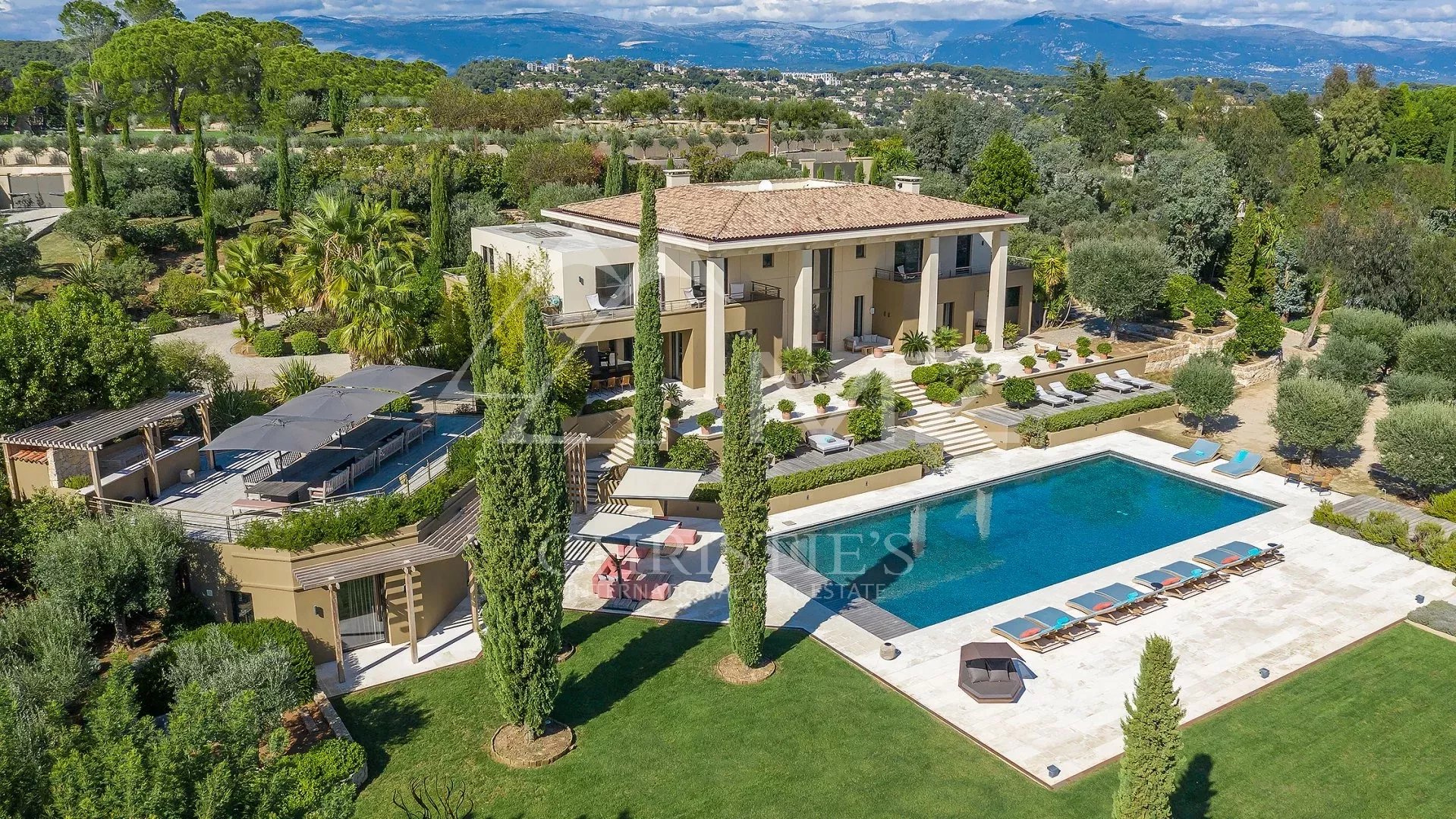 En plein cœur du secteur résidentiel de Super Cannes, et très certainement l'une des plus belles propriétés, cette majestueuse villa familiale à la décoration raffinée offre un panorama exceptionnel sur la mer. Rare, et unique à Cannes, un parc d'environ 47000 m² entièrement paysagé par de multiples essences méditerranéennes. Charme et authenticité sont ses principaux atouts. Le domaine offre, 9 chambres en suite, 2 piscines, une salle de cinéma, un spa, service hôtelier palace inclus.