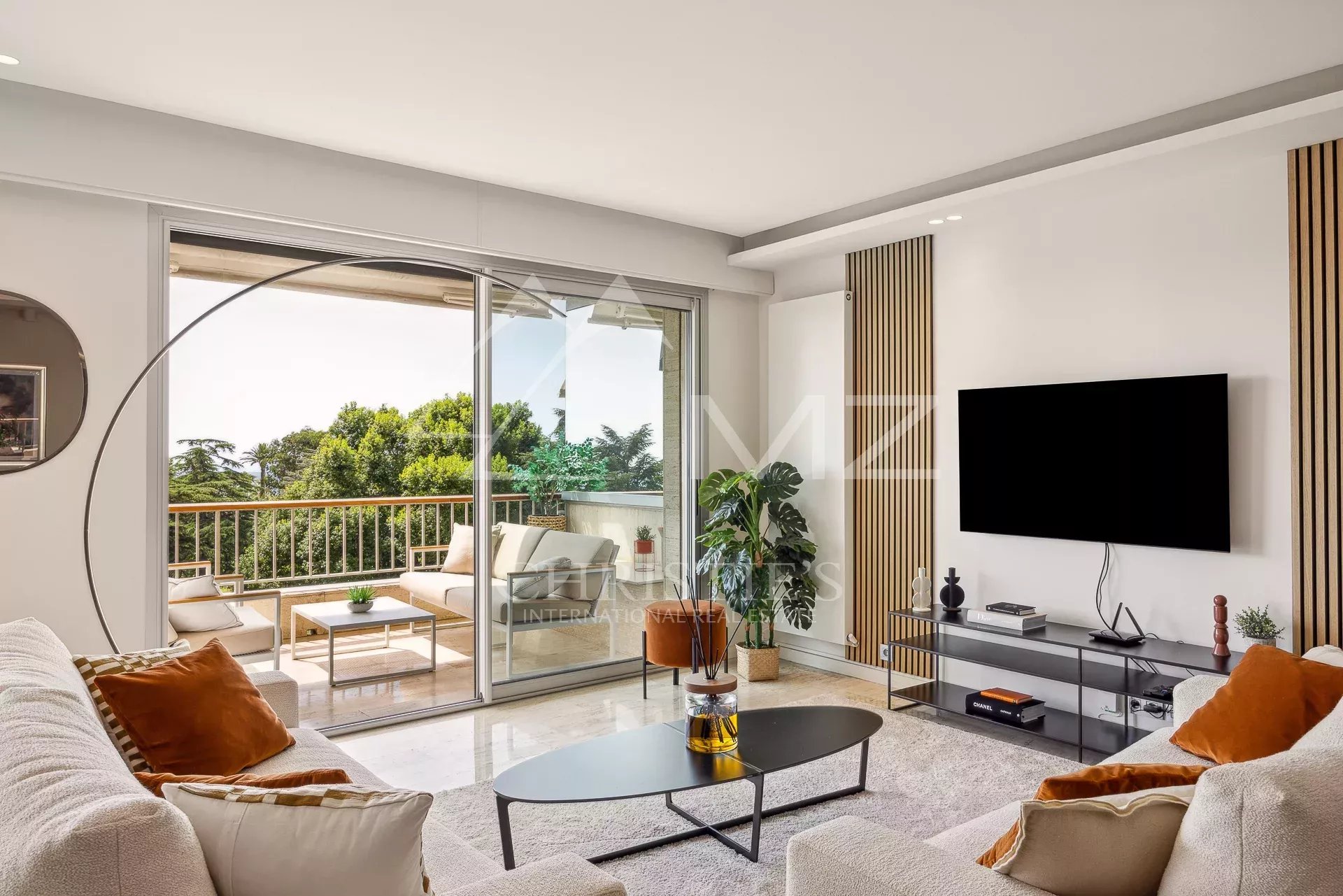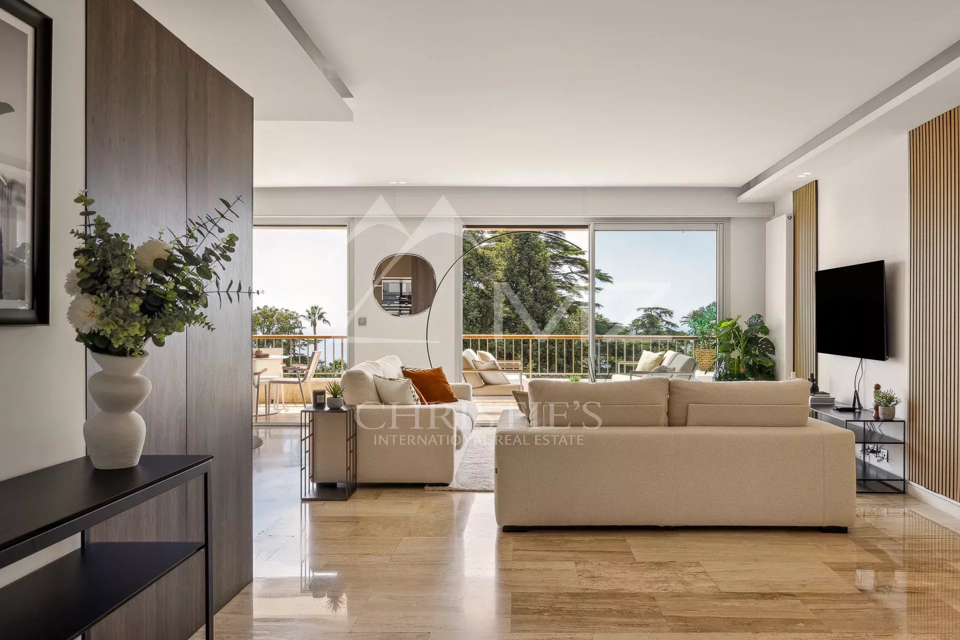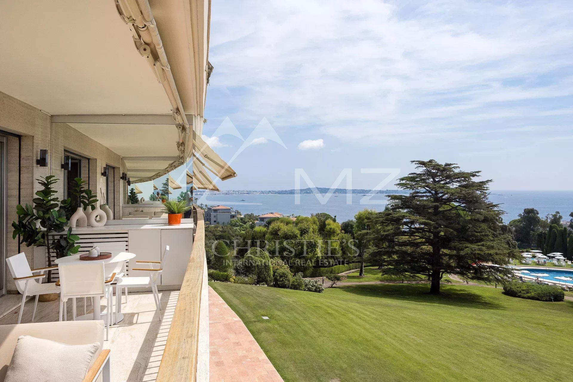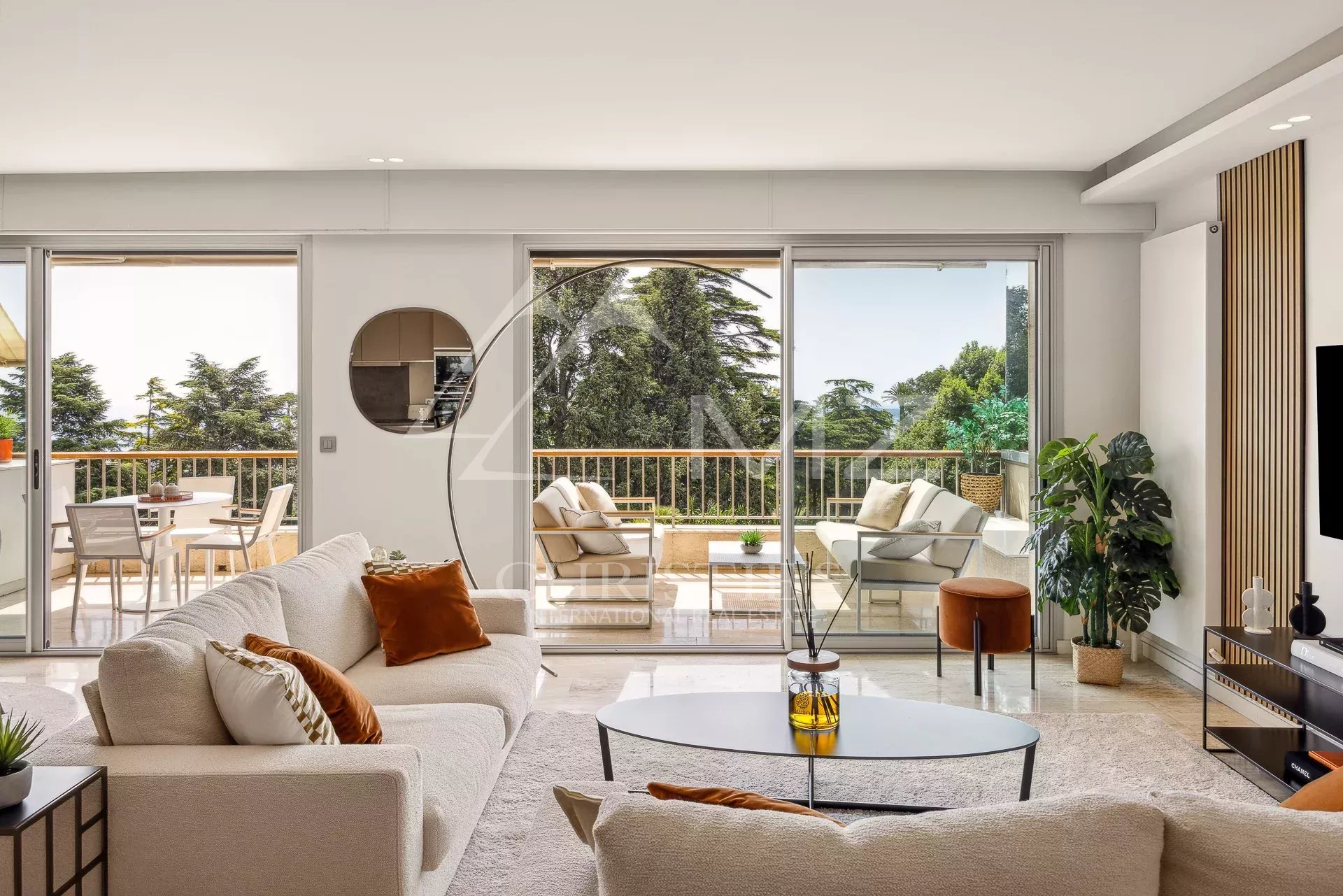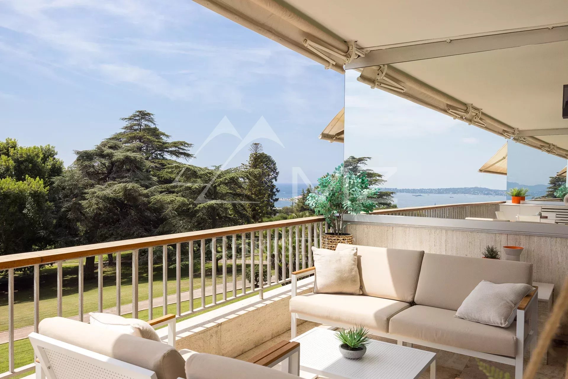 D'une surface de 95 m², cet appartement offre une magnifique vue sur le parc et la mer depuis sa terrasse de 20m². Lumineux et sans vis-à-vis, il est en excellent état avec des matériaux de qualité. La cuisine ouverte est entièrement équipée et l'appartement dispose de la climatisation. Les deux chambres en suite offrent un confort optimal pour les occupants.