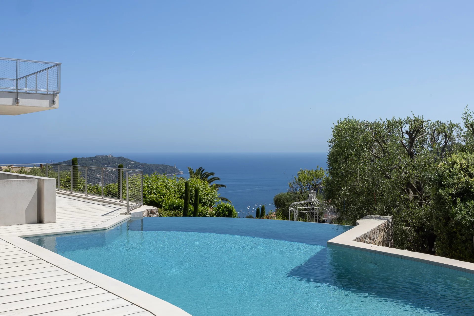 Michaël Zingraf Real Estate Nice vous présente, Co-Exclusivité: Découvrez cette villa contemporaine d’exception, bénéficiant d’un emplacement privilégié surplombant les deux plus belles baies de la Côte d’Azur. Offrant une vue panoramique imprenable sur les baies de Saint-Jean-Cap-Ferrat et de Villefranche-sur-Mer, ainsi que sur la baie des Anges à Nice jusqu’à l’Estérel, cette propriété est un véritable bijou.