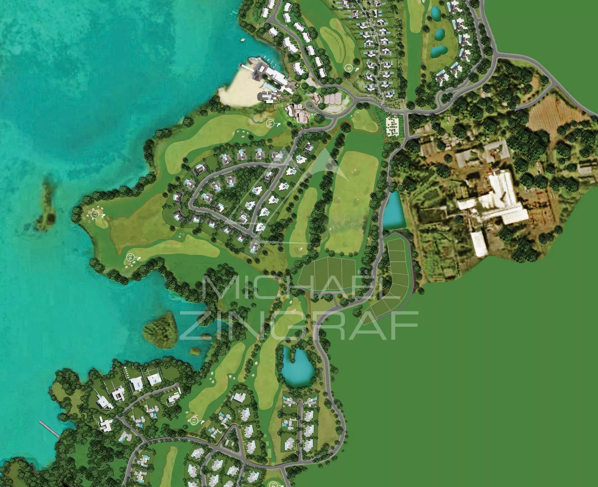 Ce grand lot de 5 275 m2 rectangulaire se situe dans un emplacement privilégié du domaine entre le practice de golf et les trous 10 et 15 du parcours. Il offre de superbes vues sur les fairways, les banians et la cocoteraie tout en permettant beaucoup d’intimité.