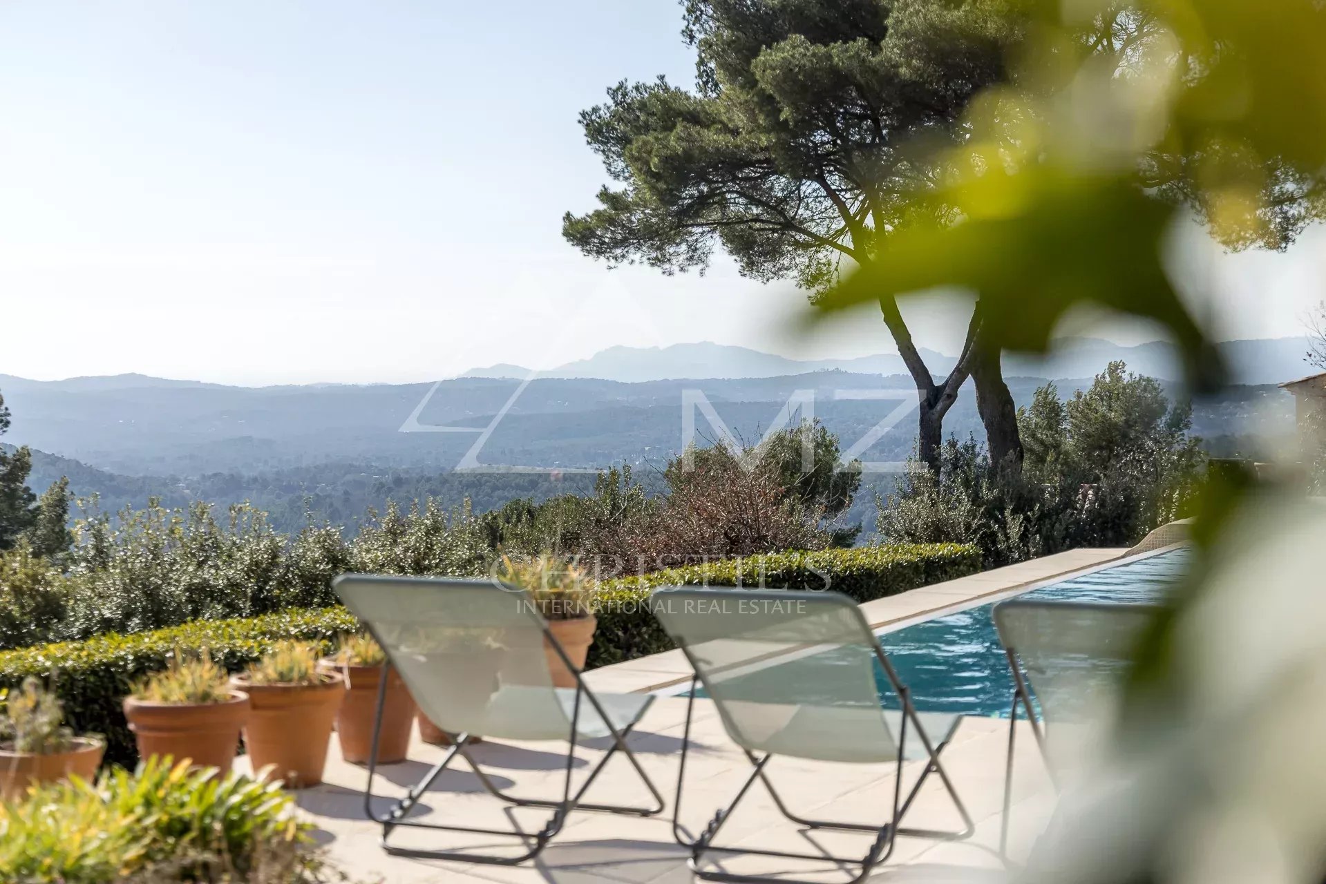 Très belle bastide provençale d'environ 300 m² entièrement rénovée avec une magnifique vue panoramique sur la mer. Cette propriété se trouve dans un quartier calme et résidentiel à seulement quelques minutes à pieds du village de Tourrettes.