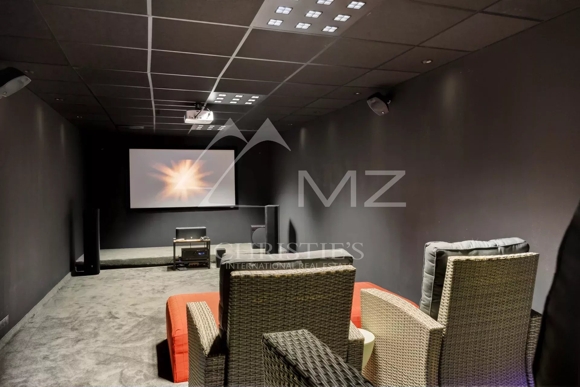 Au rez-de-jardin :Une salle de sport spacieuse, un home cinéma, une cave à vin, un très grand atelier, une buanderie et un studio comprenant un séjour, une chambre et une salle de douche
