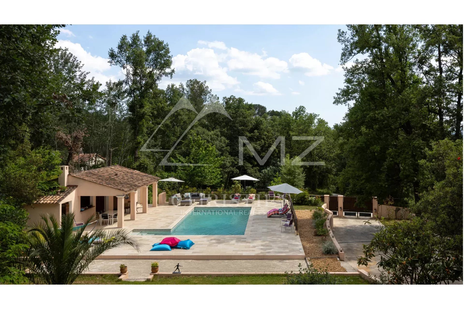 Au rez-de-chaussée :Un vaste séjour avec salle à manger, une cuisine ouverte entièrement équipée avec arrière-cuisine le tout ouvrant sur une belle terrasse offrant une vue sur l'extérieur et la piscine. Quatre chambres avec dressing, une salle de bain ansi qu'une salle de douche