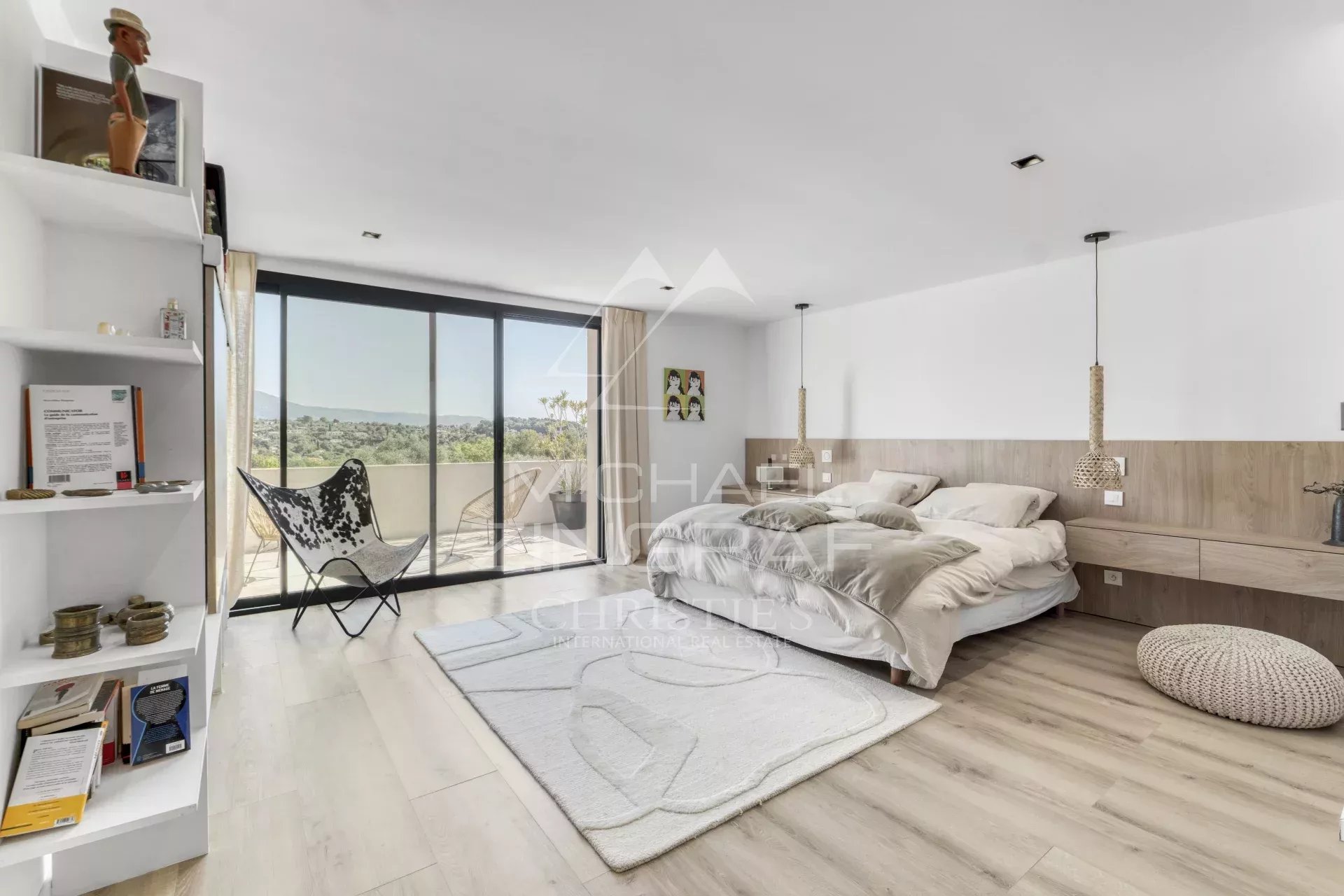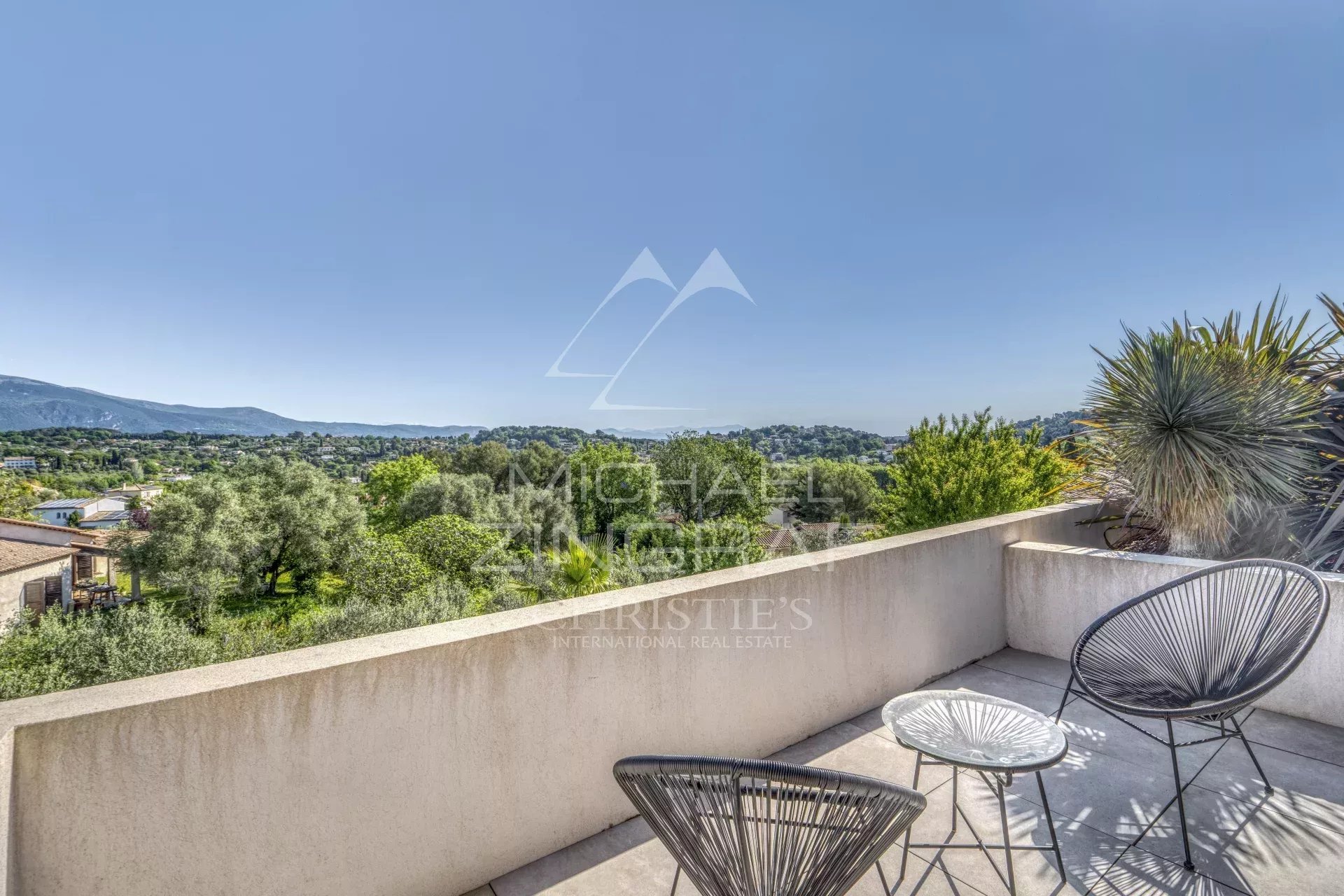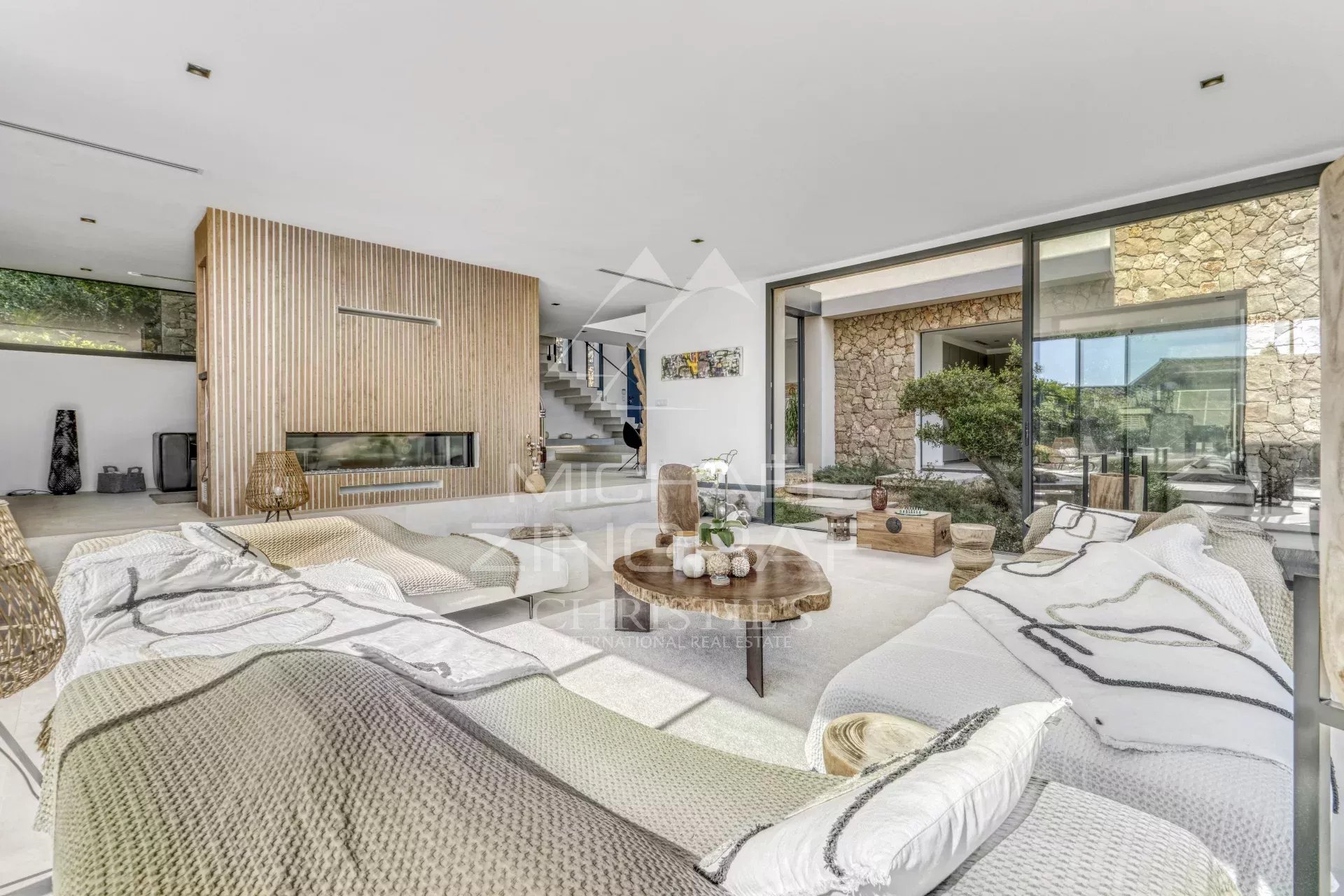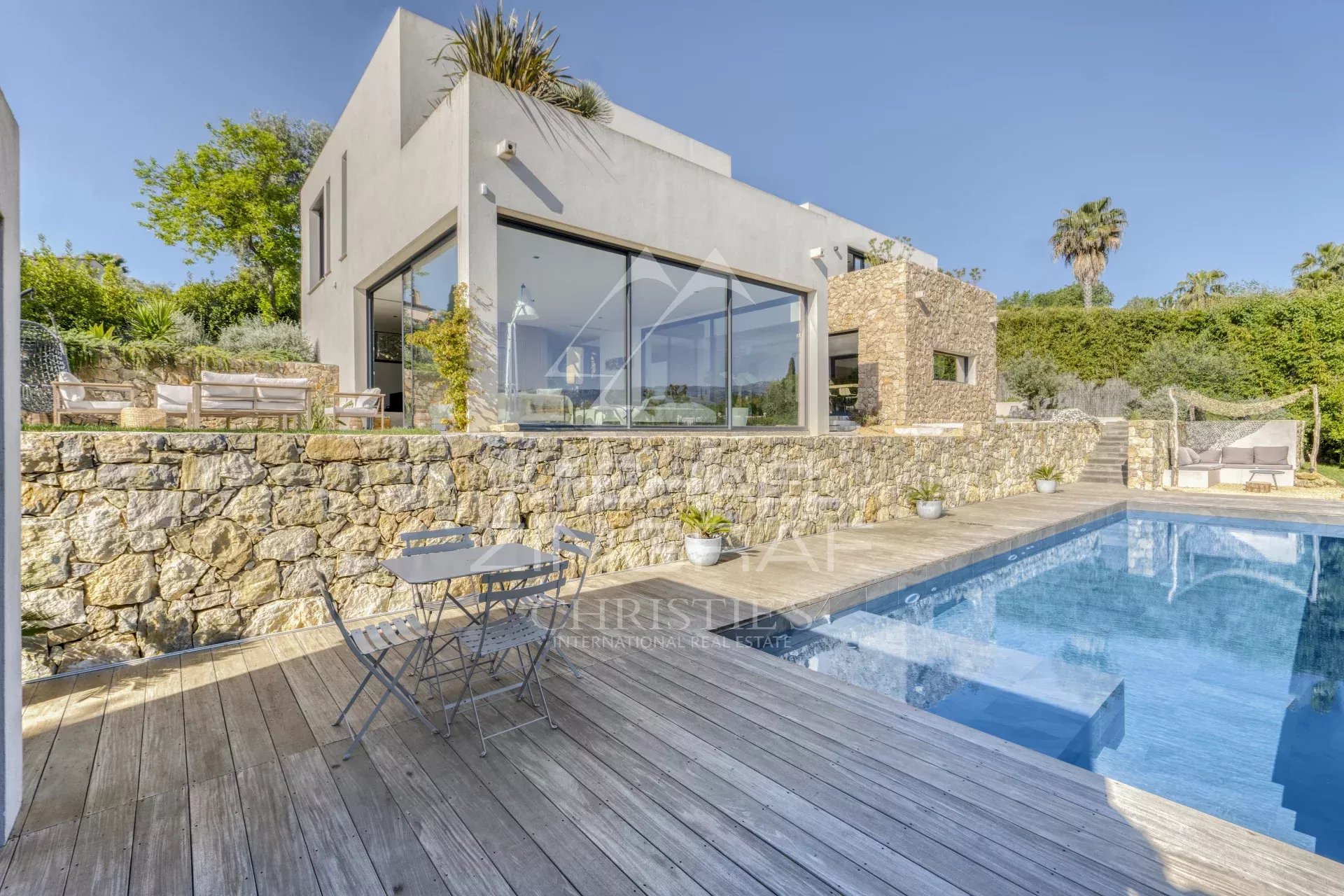 Située à quelques minutes à pied du village de Valbonne, cette villa contemporaine offre environ 300 m² habitables sur un terrain de 1 545 m². Elle bénéficie d'une vue dégagée sur les collines environnantes.