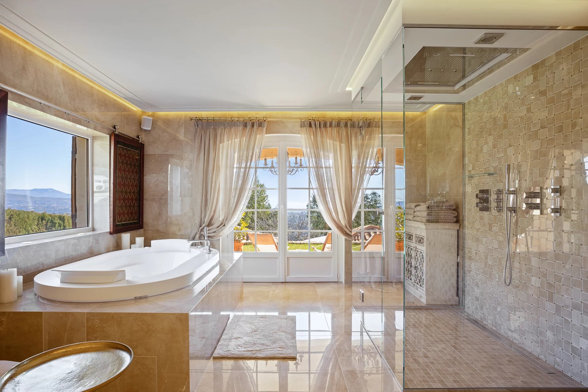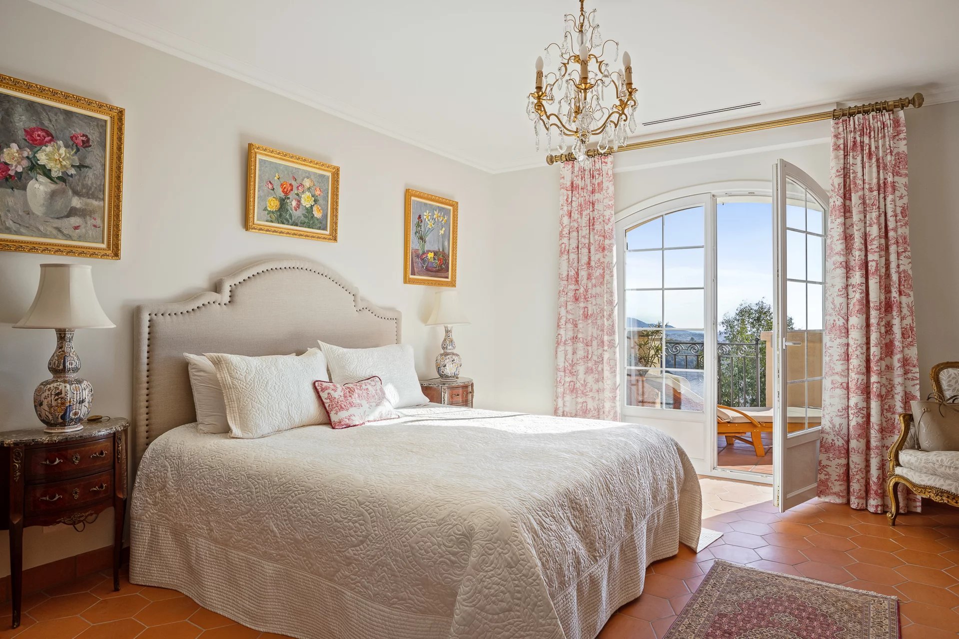 Située en position dominante et offrant une vue mer époustouflante, venez profiter de cette magnifique bastide de charme entièrement rénovée et offrant des prestations de hautes qualités : 4 chambres et 4 salles de bain en suite, de nombreux espaces réceptifs intérieurs et extérieurs, 2 grandes terrasses exposées plein sud aménagées en salons et salles à manger d'été. Belle piscine au sel chauffée et pool house aménagé pour de bons moments de convivialité.
