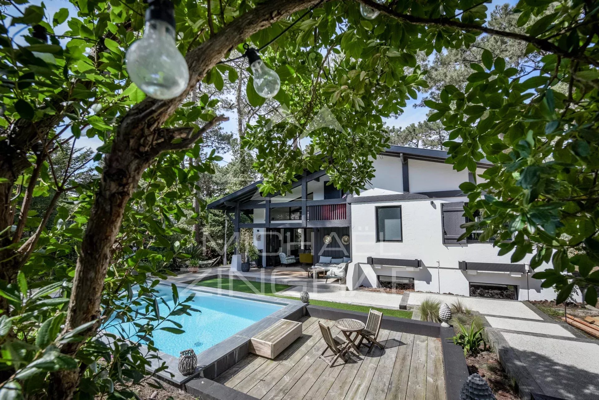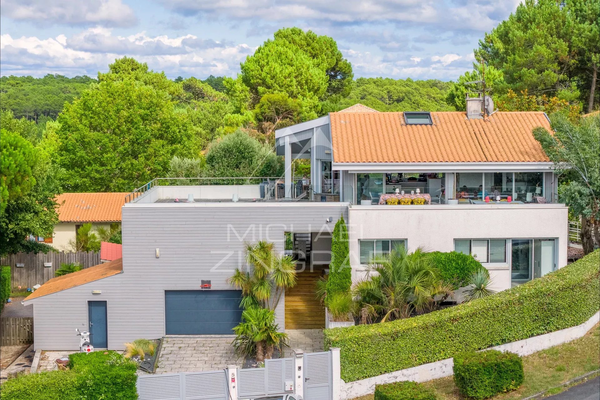 Michael Zingraf Real Estate – Bassin d’Arcachon vous invite à découvrir une villa d’architecte au charme unique, nichée dans un écrin de verdure de 1 432 m², à seulement quelques...