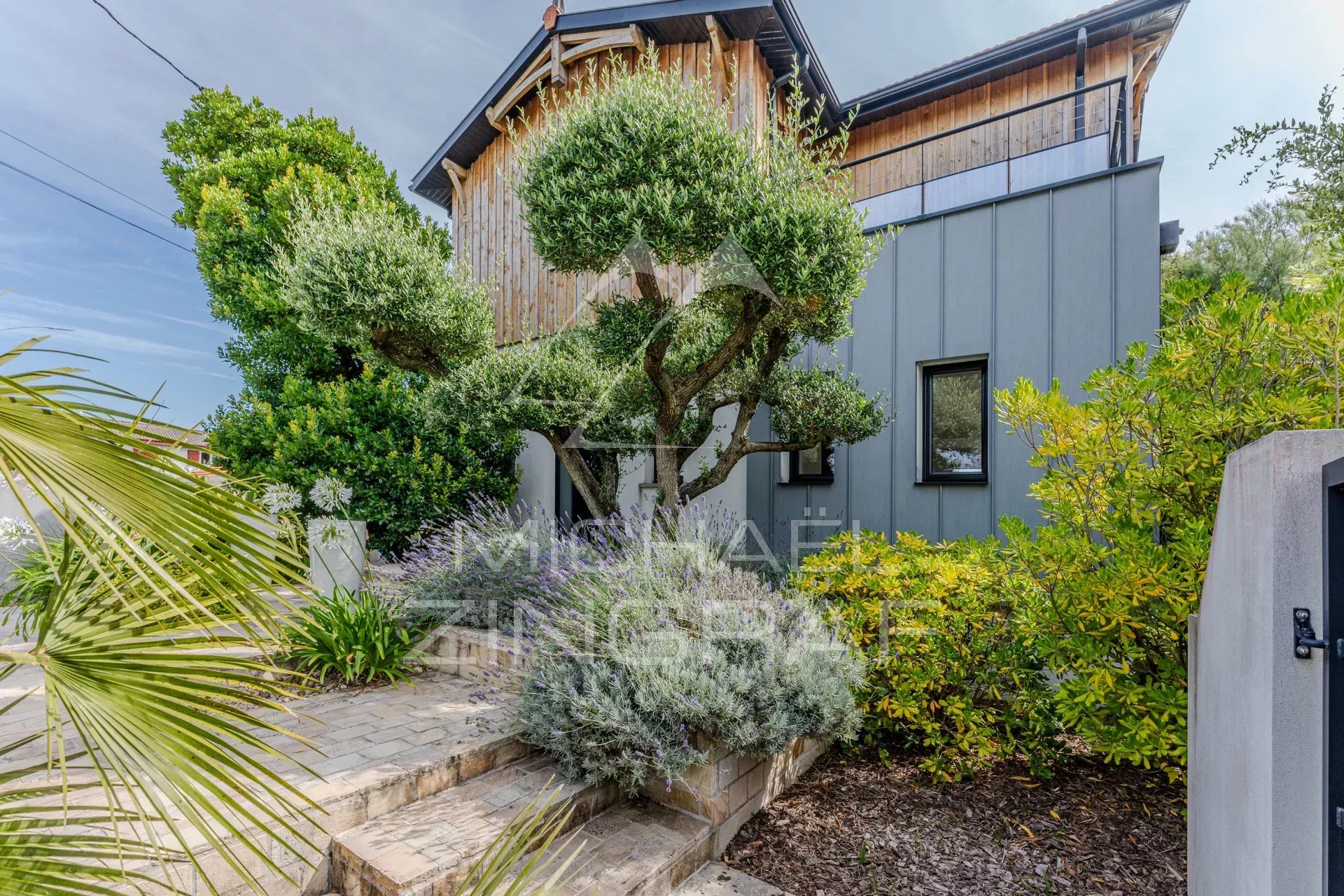 Villa de 184m² à l'exposition parfaite, posée sur une parcelle de 1138m². Elle se décompose en une maison principale offrant en rez de jardin un séjour "cathédrale" avec cheminée, ouvert...