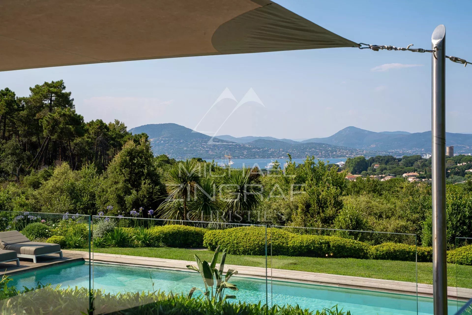 Située dans un domaine fermé et paisible, à seulement quelques minutes à pied du centre-ville, cette villa offre une vue panoramique spectaculaire sur la baie et le village de Saint-Tropez....