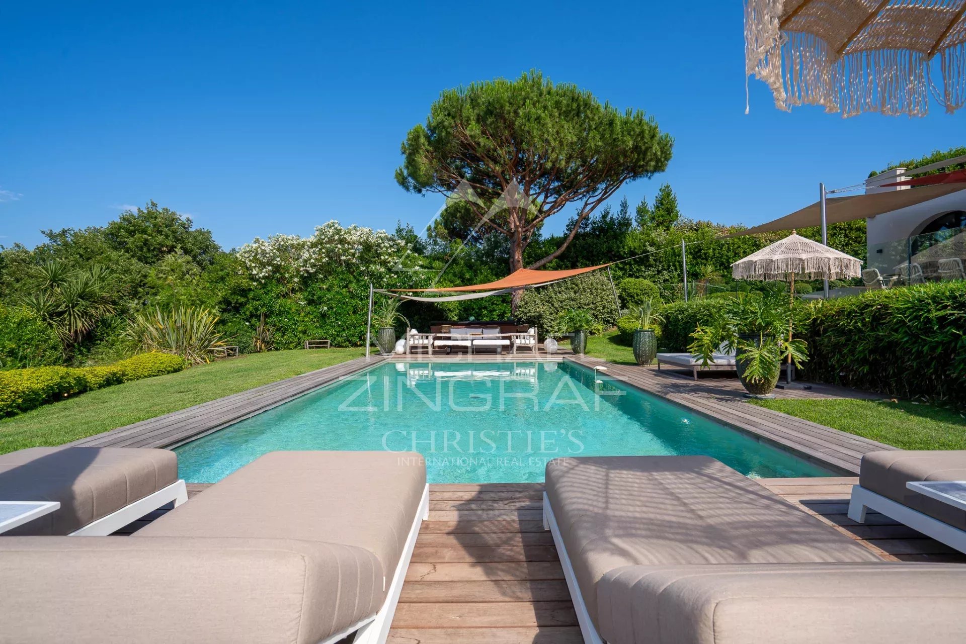 Au coeur du Cap d'Antibes, en position dominante et profitant d'une superbe vue sur la mer Méditerranée - Magnifique villa contemporaine récemment construite, vendue entièrement meublée et décorée avec beaucoup...