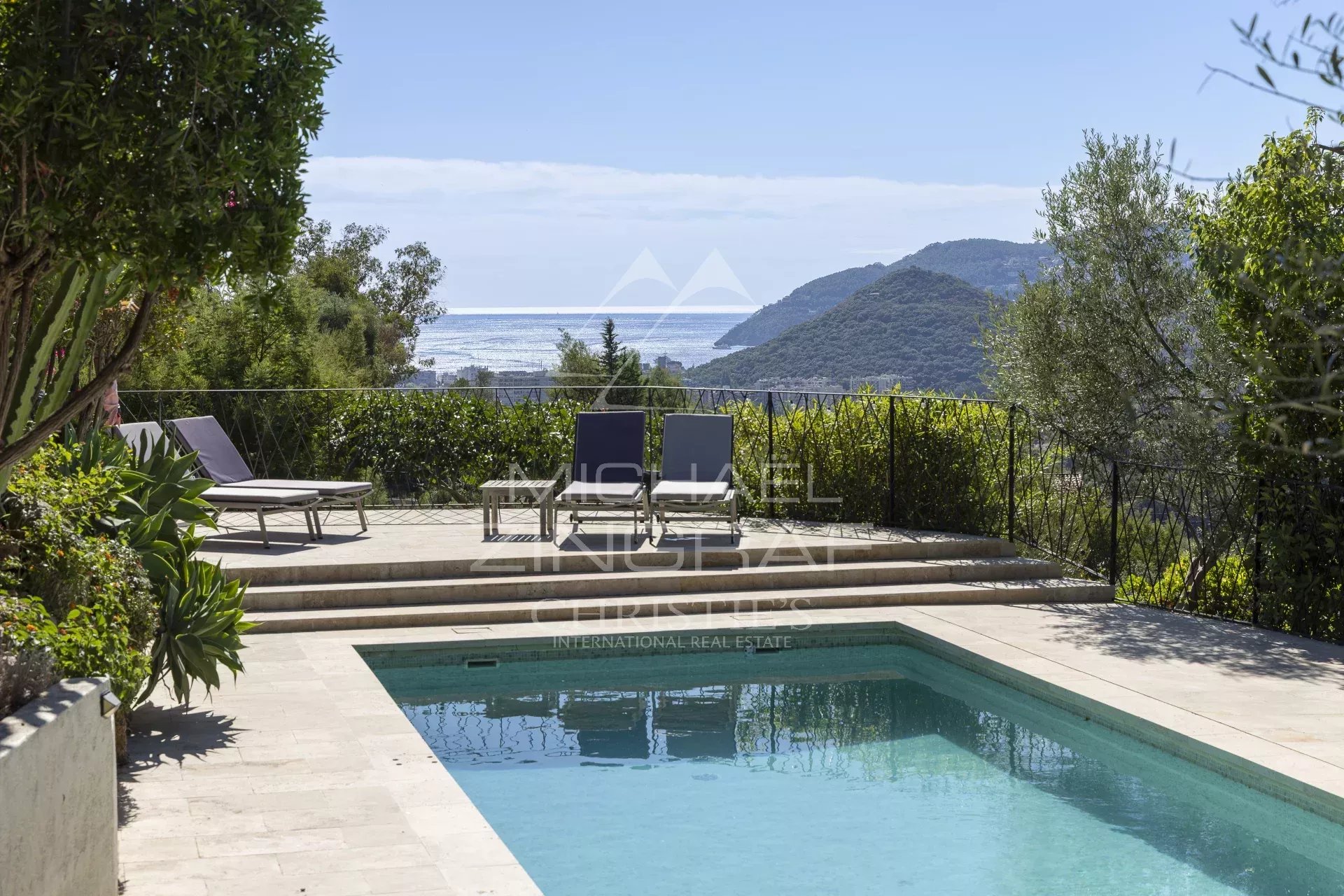 Située dans un domaine privé et sécurisé 24/24 avec piscine et tennis, villa d'architecte sans vis-à-vis offrent un très agréable panorama sur la mer et la verdure de la forfait...