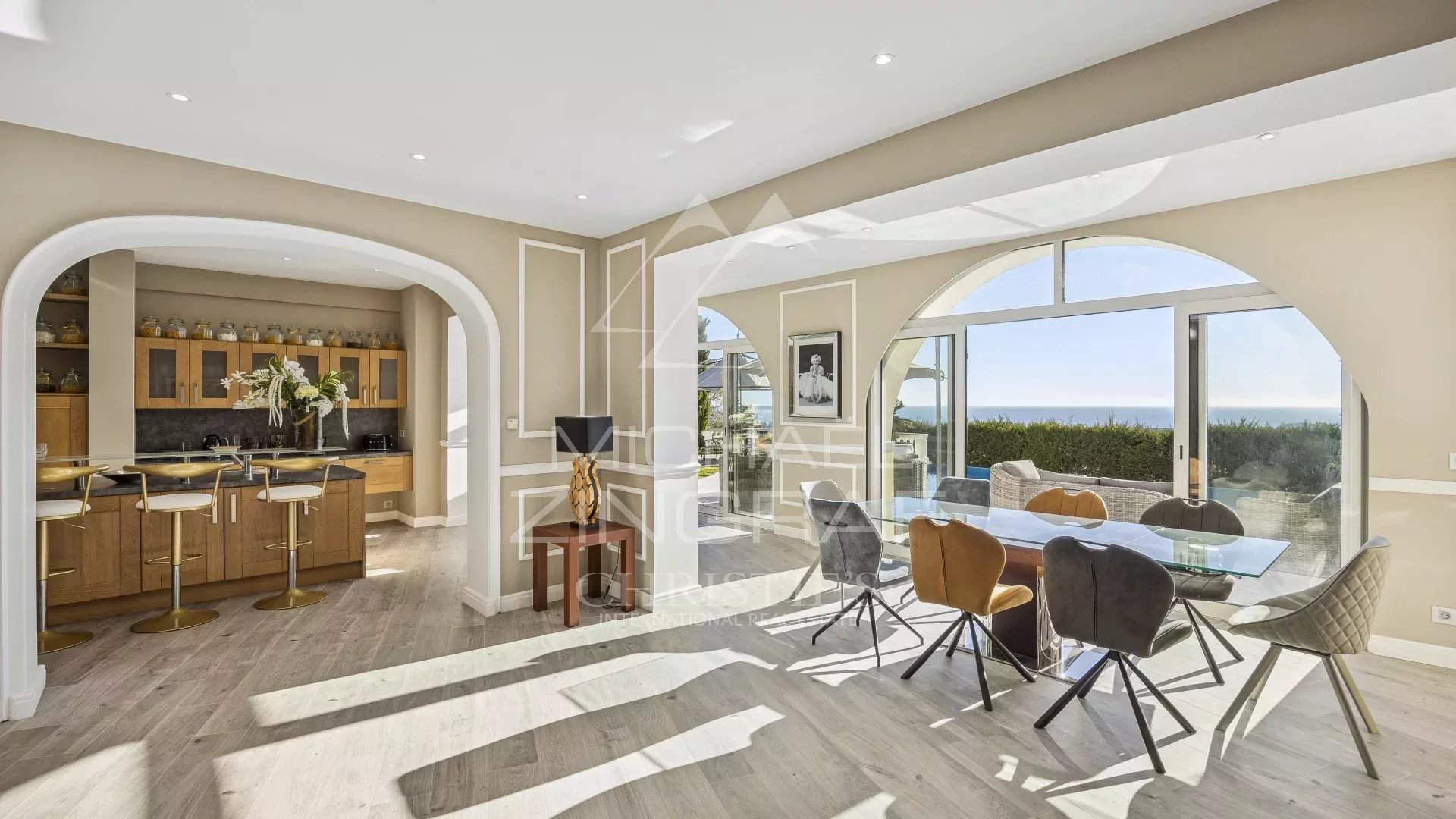 Sensation de bien-être garantie pour cette villa moderne entièrement rénovée totalisant 287 m2 environ répartis sur 3 niveaux, avec ascenseur. Séjour cathédrale de 70m2 avec cuisine américaine ouvrant sur une...