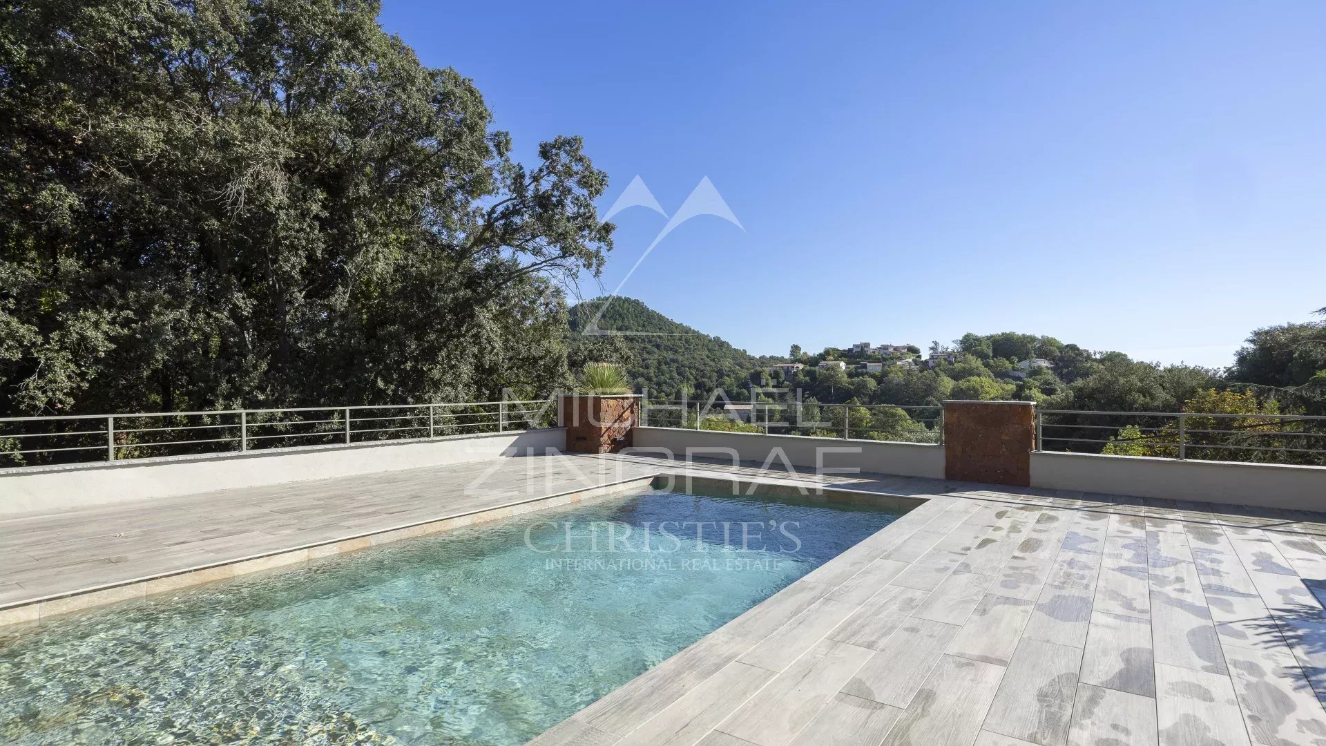 Co-exclusivité. À 15 minutes de Mandelieu, dans un environnement naturel, avec vue panoramique des montagnes jusqu'à la mer, cette maison de style contemporain dispose d'un vaste espace de vie avec...