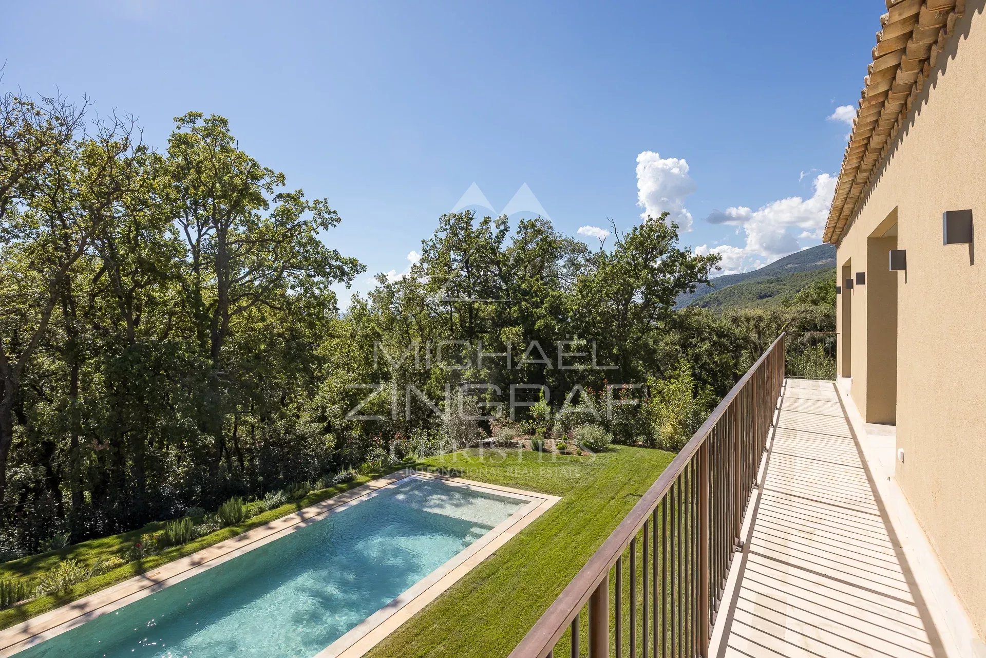 Nichée dans un cadre calme et privilégié, en position dominante, cette superbe propriété magnifiquement rénovée et agrandie alliant style provençal et contemporain a été achevée en 2022. Édifiée sur un...