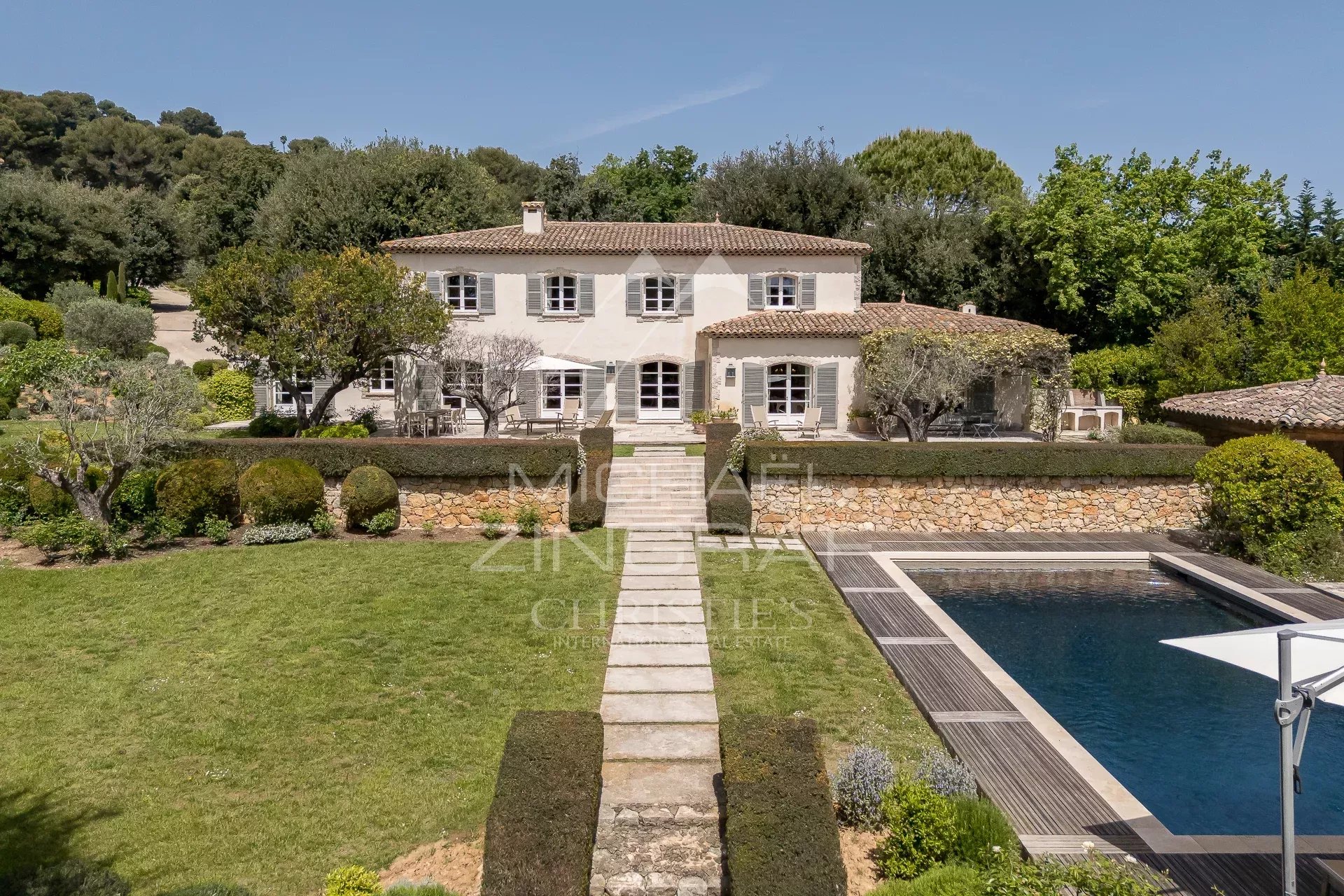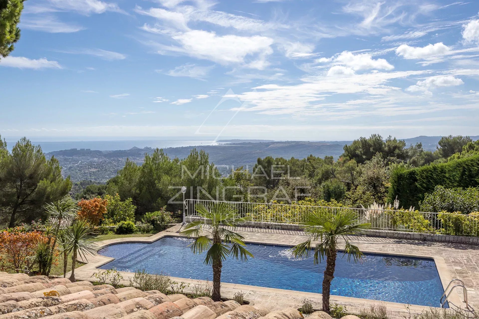 Exclusivité. Au calme total, en position dominante avec une vue fantastique sur la mer et le Cap d'Antibes, cette Bergerie entièrement rénovée au charme fou bénéficie de magnifiques espaces extérieurs...