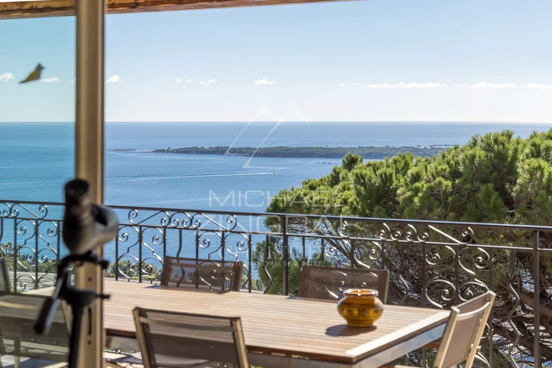 Exclusivité. Au calme total, en position dominante avec une vue fantastique sur la mer et le Cap d'Antibes, cette Bergerie entièrement rénovée au charme fou bénéficie de magnifiques espaces extérieurs...