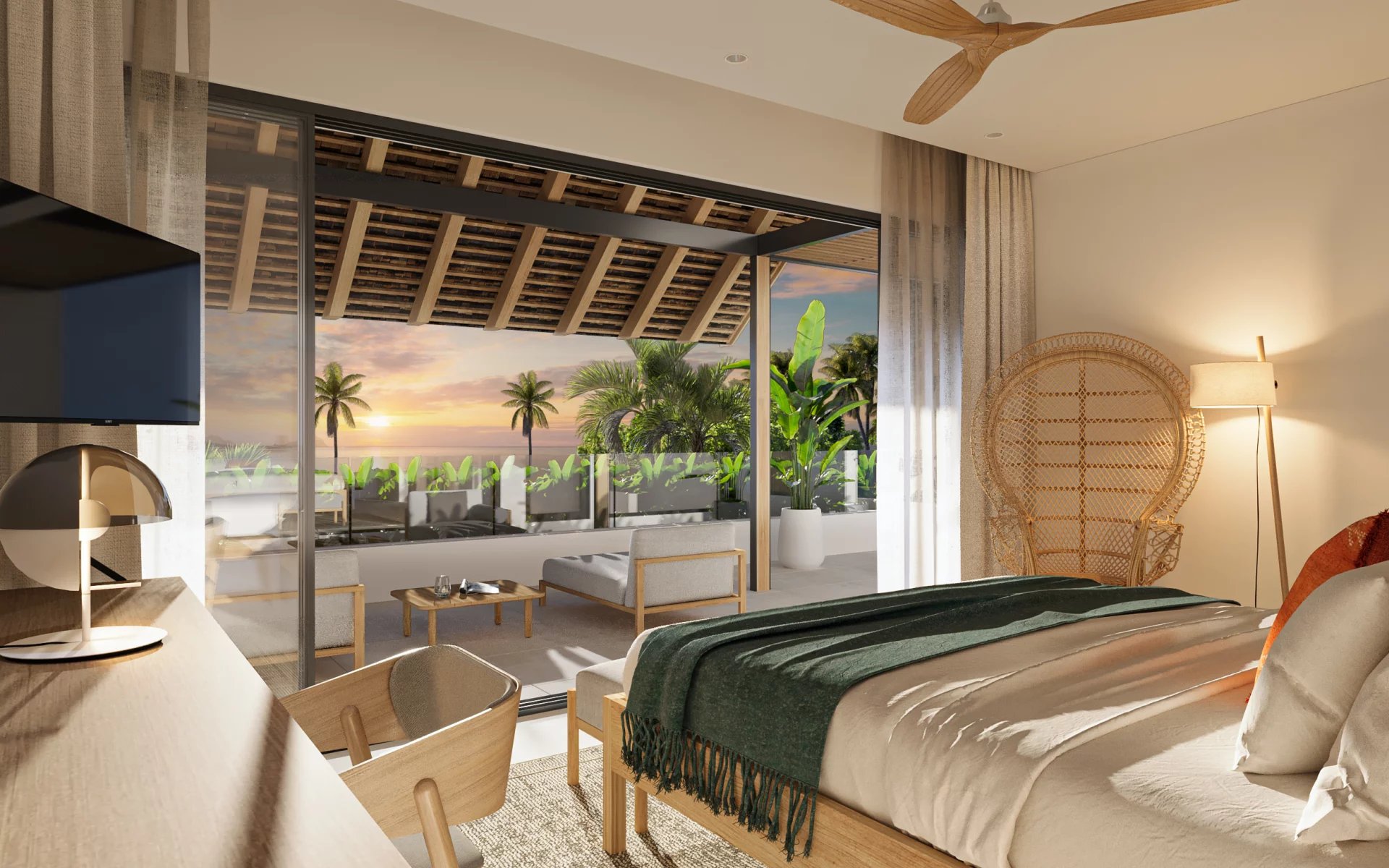 De 4 chambres en-suite, les villas offrent un lieu de vie majestueux, avec terrasse extérieure, piscine à débordement privative et accès direct au lagon. La vue qui s’offre à vous...