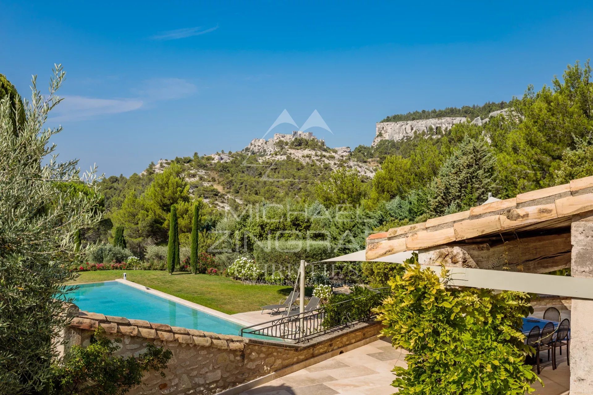 Située aux Baux de Provence, cette propriété d’exception d'environ 285m² offre une vue panoramique à couper le souffle sur la vallée environnante plantée d'oliviers et le fameux Château des Baux....