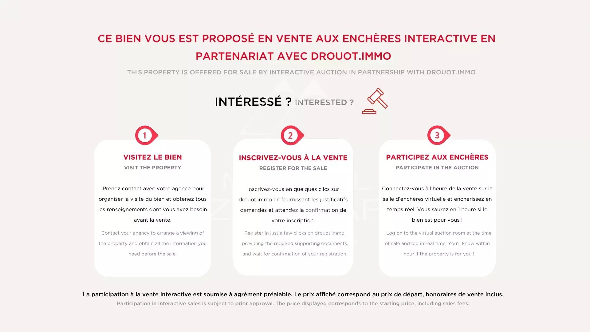 Ce bien vous est proposé en vente aux enchères interactive par l'intermédiaire de Drouot.immo. La participation à la vente aux enchères est soumise à agrément préalable. Prix de départ :...