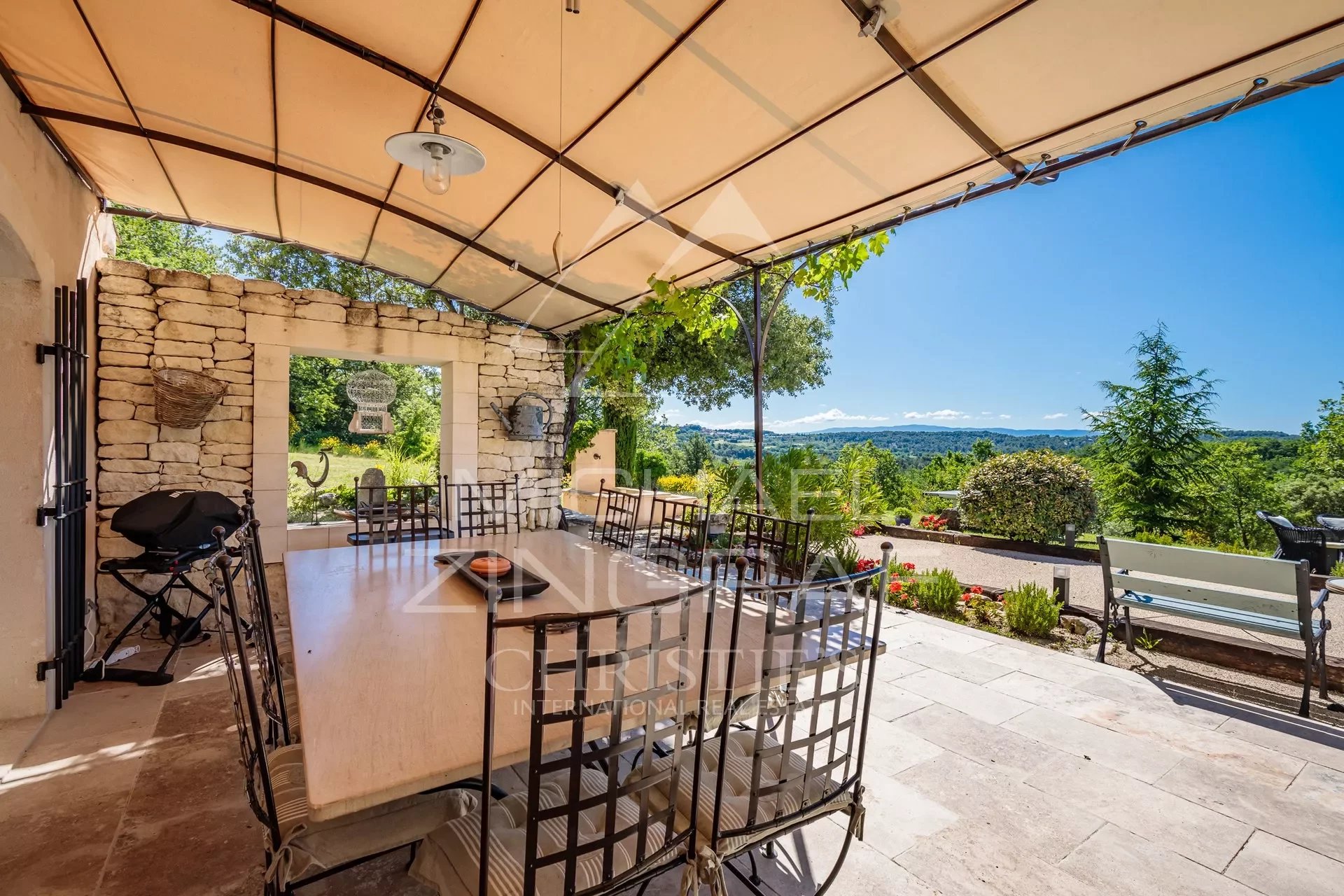 À moins de 10 minutes de l'emblématique village de Gordes, cette magnifique propriété est située dans un cadre paisible et authentique et elle offre une vue absolument exceptionnelle sur le...