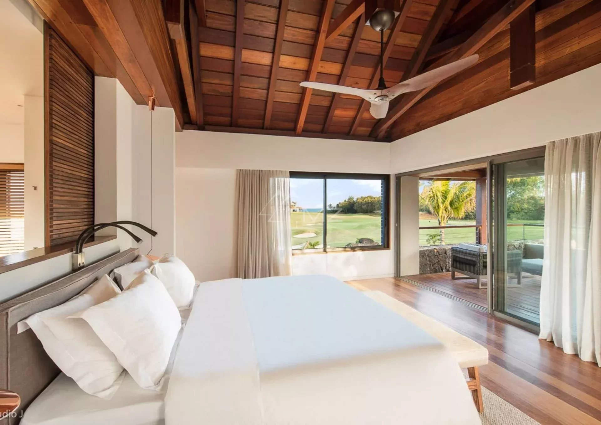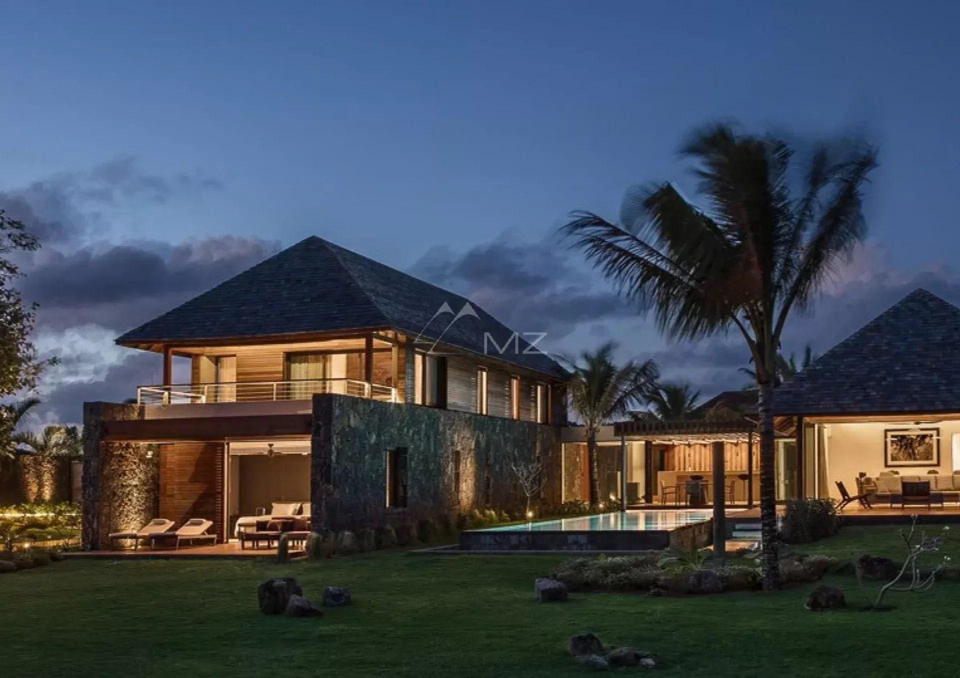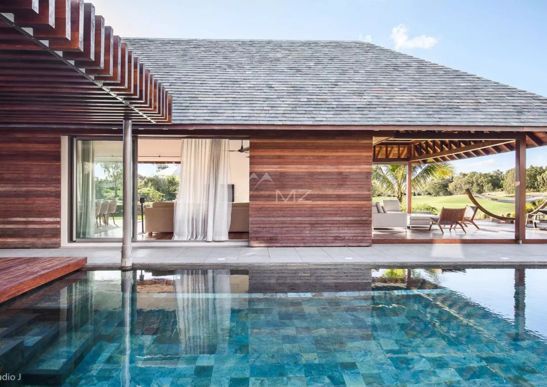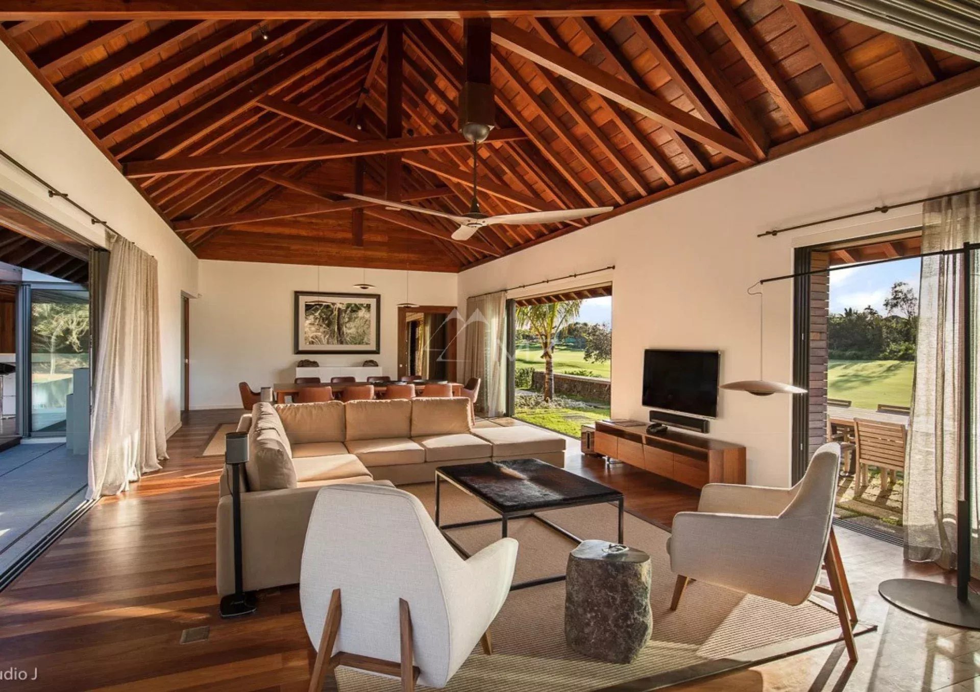 Cette superbe villa à la signature architecturale originale se situe dans le quartier The Gardens et offre une vue fantastique sur le lagon et l’un des plus beaux trous du parcours de golf d’Anahita.