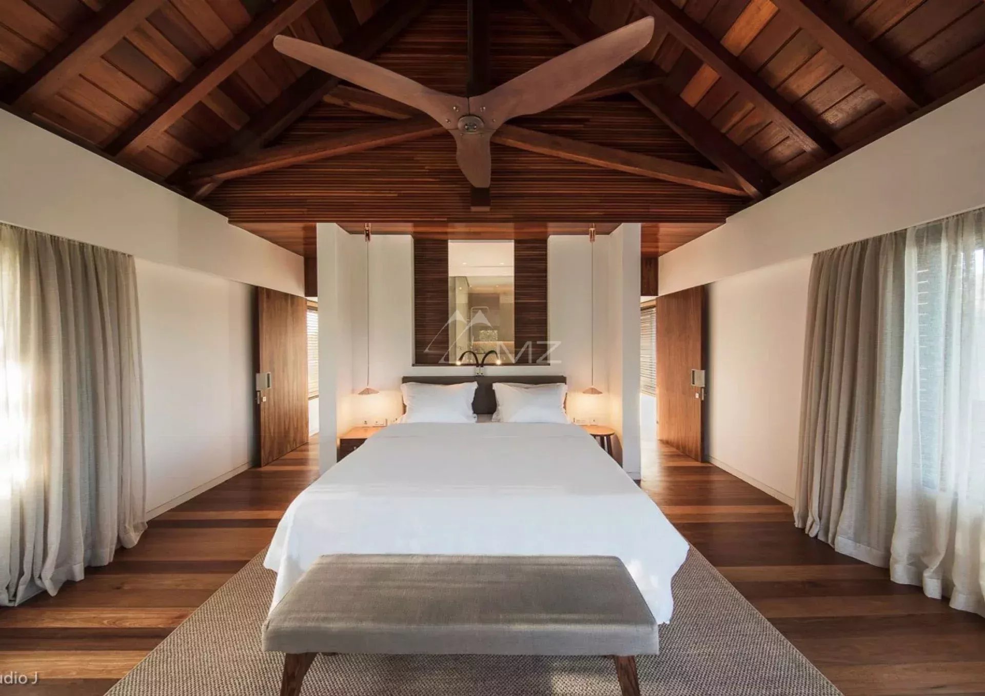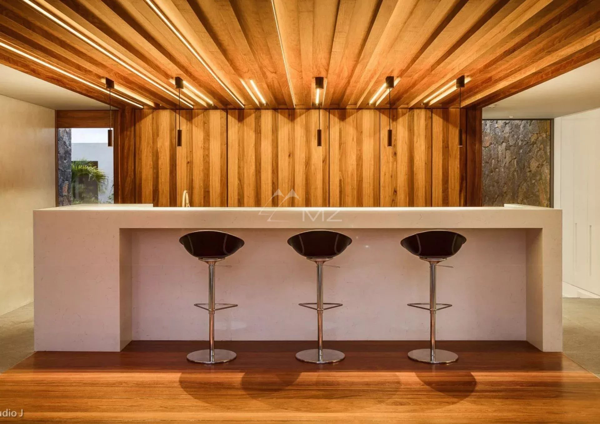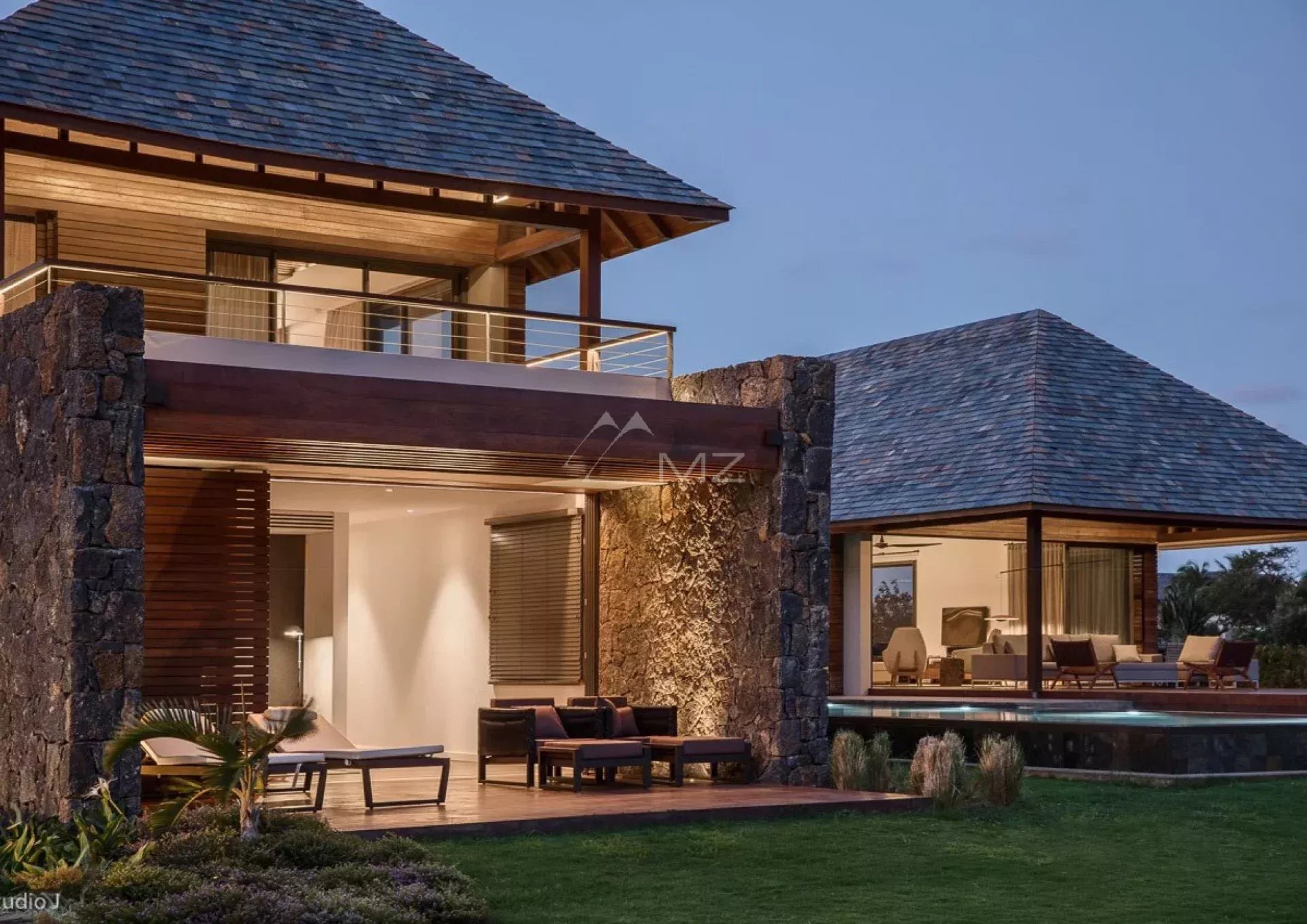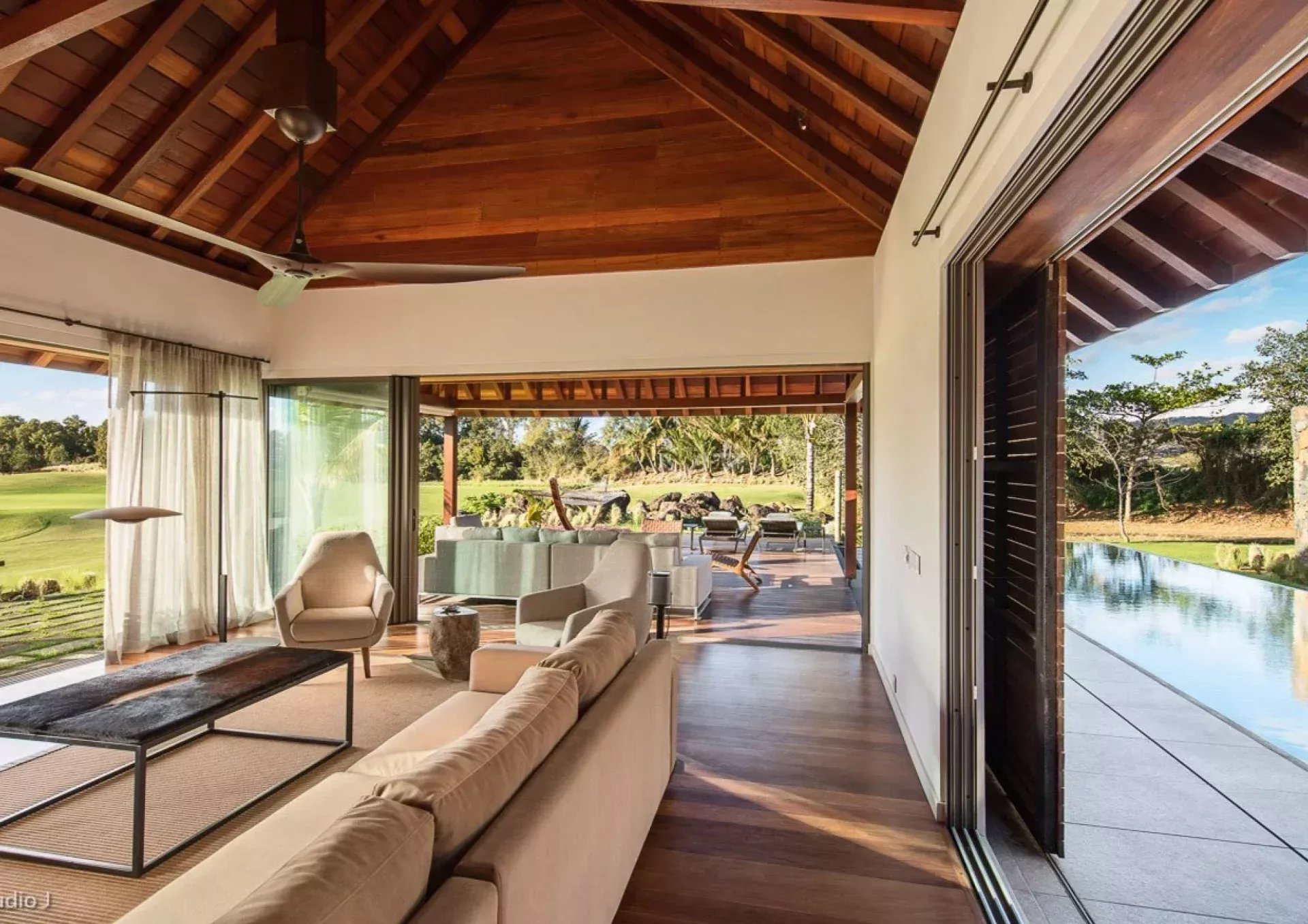 Cette superbe villa à la signature architecturale originale se situe dans le quartier The Gardens et offre une vue fantastique sur le lagon et l’un des plus beaux trous du parcours de golf d’Anahita.
