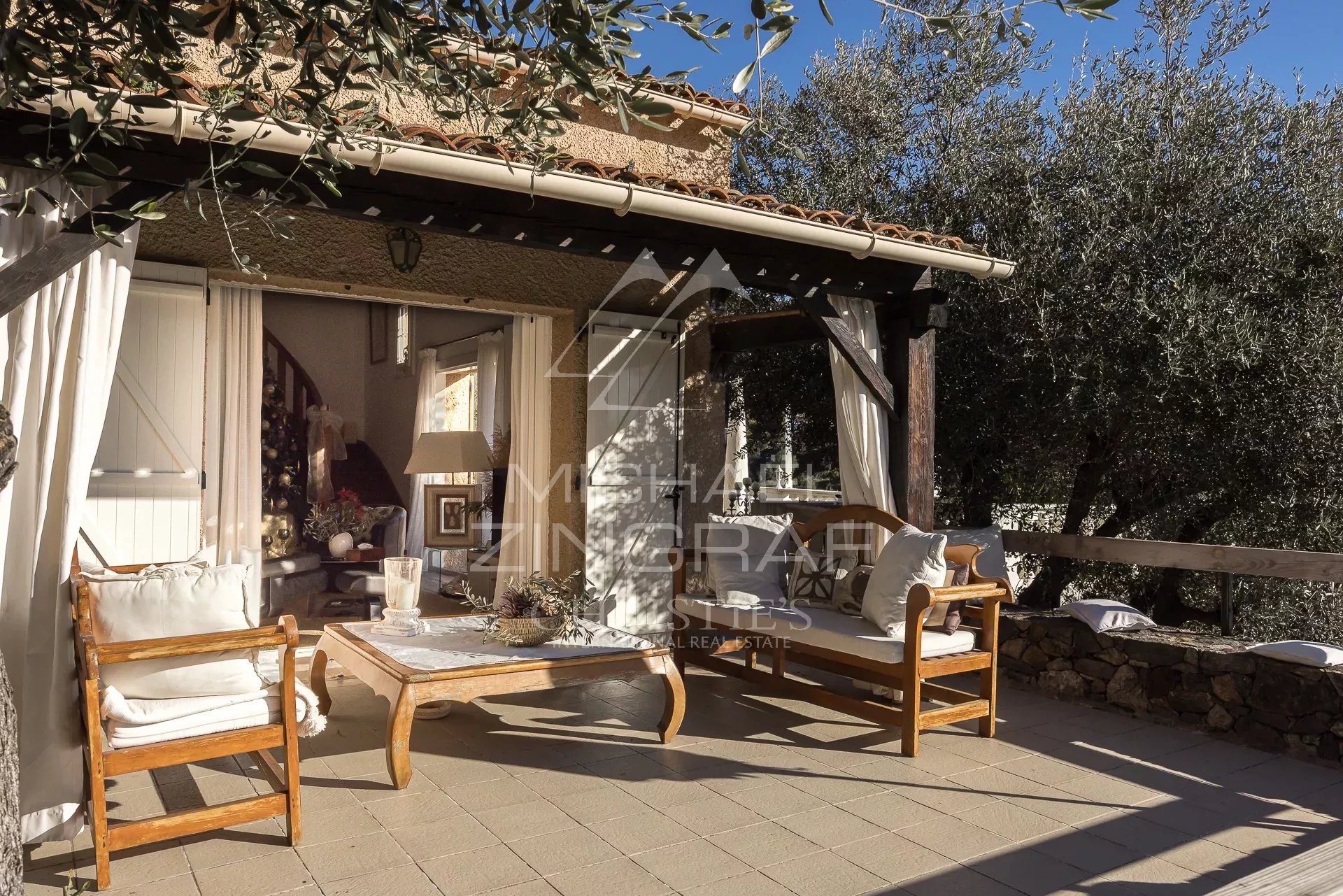 Située sur la colline de St Pancrace, cette propriété modernisée intérieurement garde son style néo-provençal.