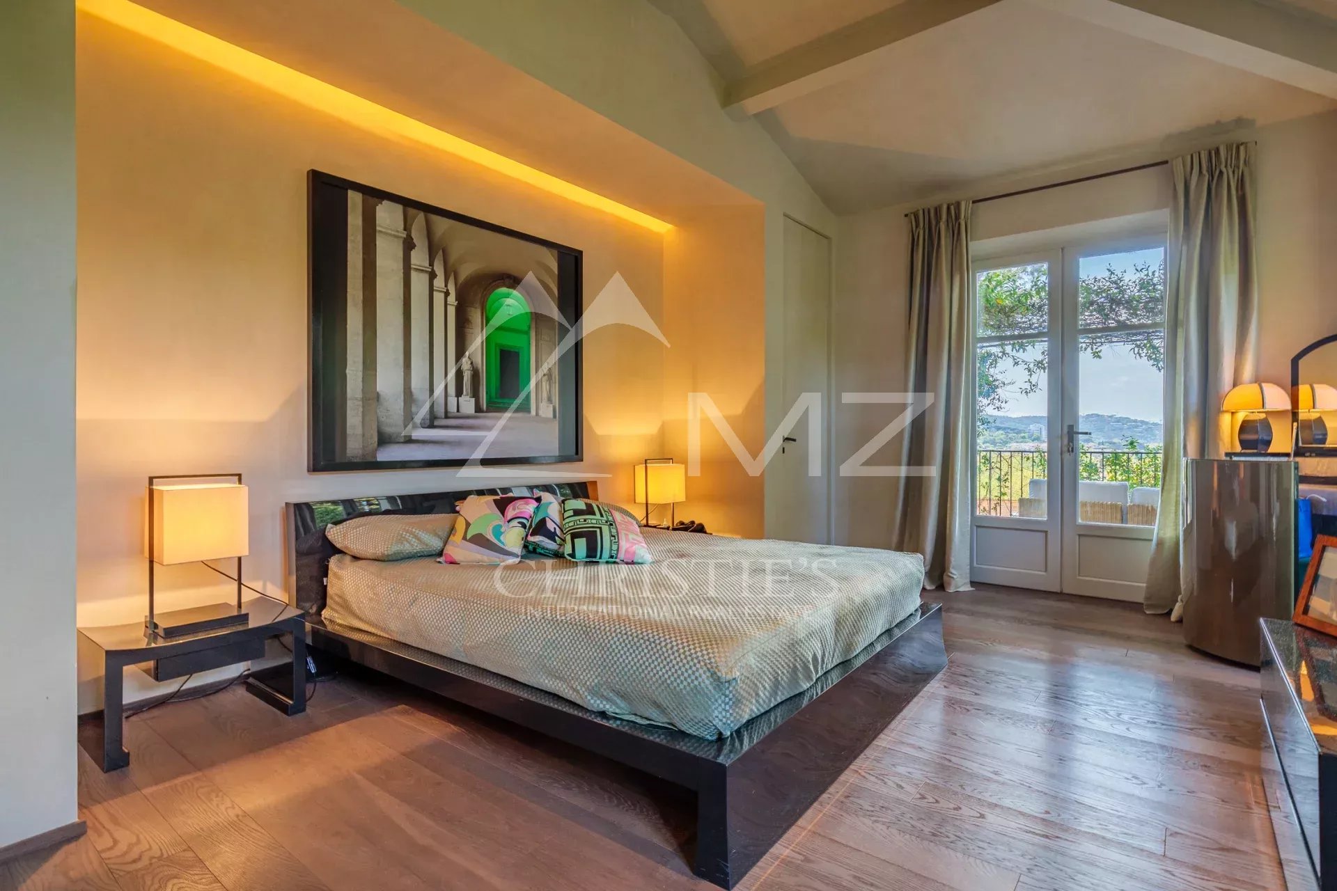 Cette propriété exceptionnelle bénéficiant d'une superbe vue dégagée sur la mer et le village, est idéalement située dans les hauteurs de Saint-Tropez, à quelque instants à pied de la célèbre place des Lices et du port.