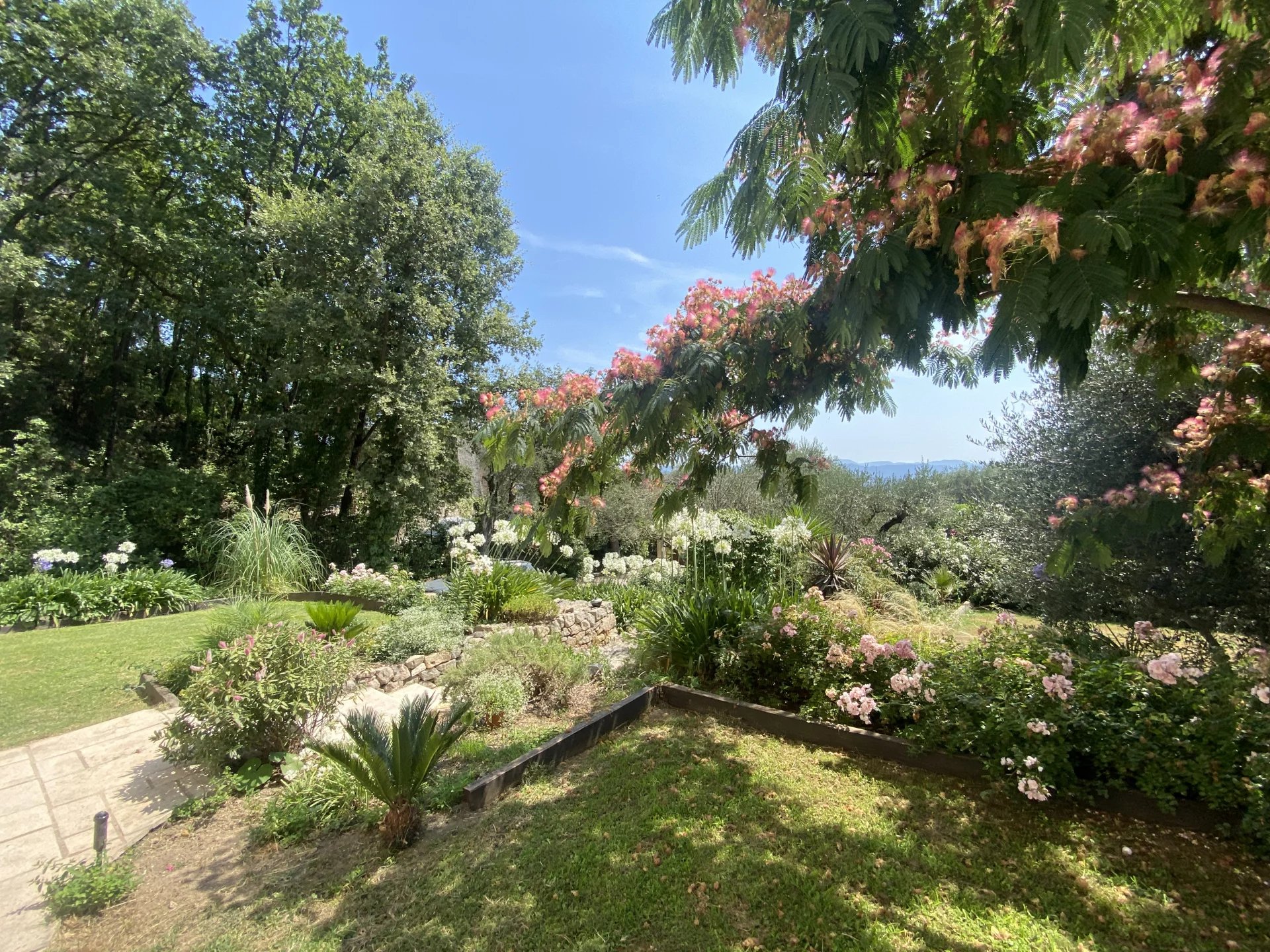 Venez profiter du charme de cette villa nichée dans un écrin de verdure aux allures tropicales sur la colline de Cabris. Construite en 2003 et assortie de matériaux nobles et raffinés, La propriété se décline sur 3 niveaux et plus de 300 m² d'espace habitable. Elle comprend un grand salon avec cheminée, une salle à manger avec plafond en voute d'arêtes et une cuisine bien achalandée dotée d'un corner dinatoire atypique très "lounge". Les étages supérieurs comprennent une suite parentale, trois chambres, un bureau et trois salles de bains. Un salon boudoir spacieux, confortable et là encore, atypique vous accueille au dernier niveau. Les abords, vous feront profiter d'une végétation superbe que complète la vue dégagée, d'un salon d'été très " île Maurice " dominant la piscine, et d'un espace cuisine d'été idéal pour recevoir famille et amis. Une cave à vin, une salle de sport et un grand garage complètent la visite. Venez vite la découvrir : elle est captivante dès l'entrée; dotée d'un calme absolu, et sans vis à vis. Elle ne demande qu'à vous ouvrir ses portes.Une jolie vue panoramique en guise de cerise sur le gateau!