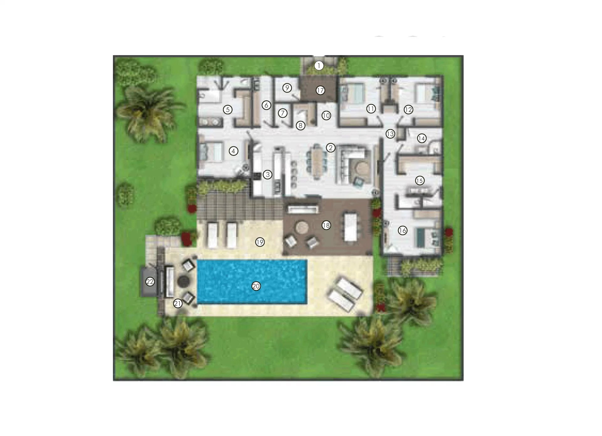 Cette villa, nichée dans un cadre verdoyant, offre un cadre de vie exceptionnel. C'est une opportunité rare d'acquérir une propriété de prestige dans la station balnéaire la plus recherchée de l'île Maurice. Sur un terrain de 756 m², la villa dispose d'une surface construite de 256 m², comprenant 4 chambres à coucher & 3 salles de bain. Son vaste espace à vivre, regroupant le salon, la salle à manger et la cuisine, s’ouvre sur une grande terrasse. L'extérieur est sublimé par un jardin privé, une piscine et un kiosque, offrant une véritable oasis de tranquillité.