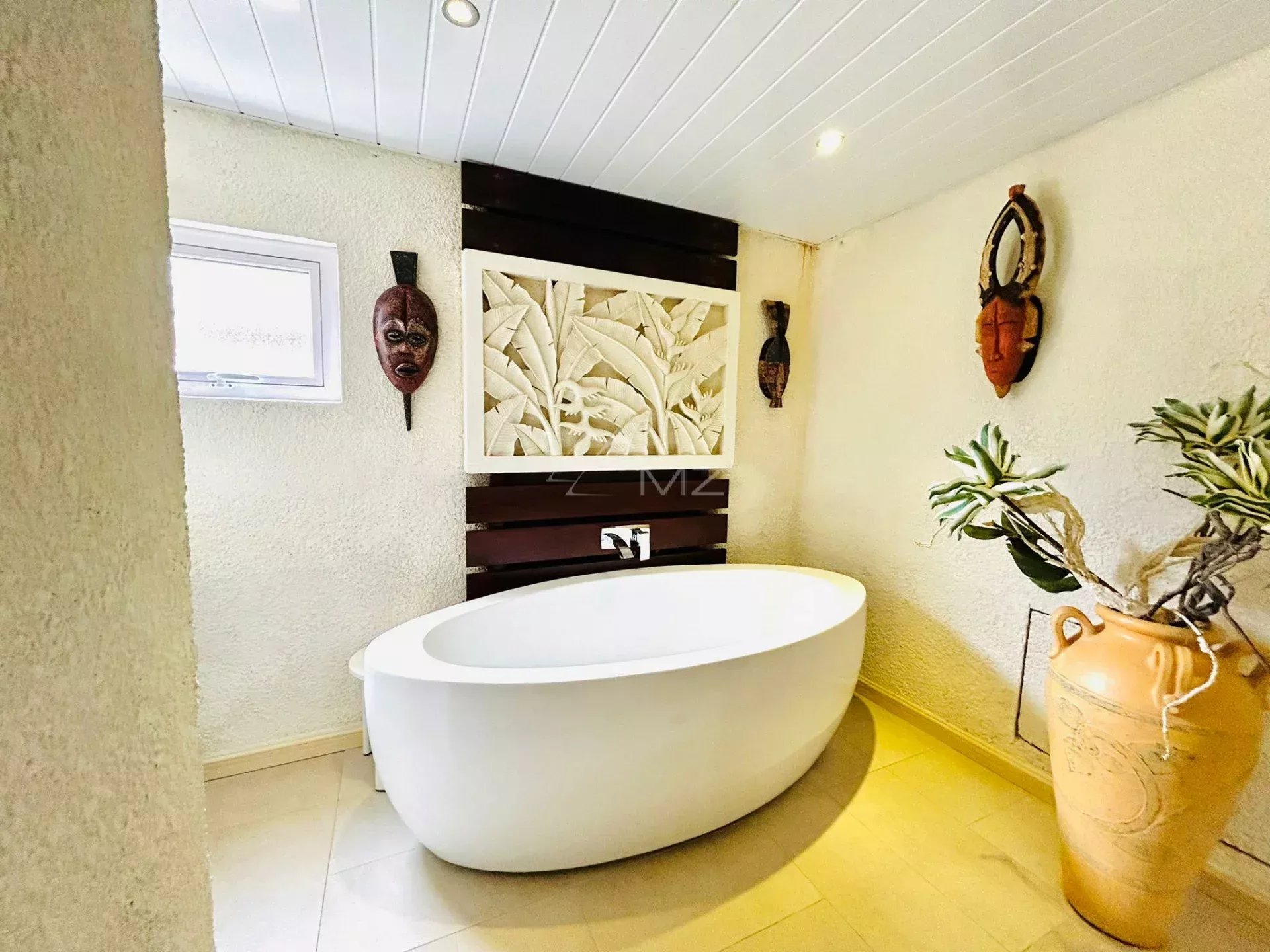 Cette propriété offre un espace de vie luxueux avec 4 chambres ensuite, incluant une suite parentale avec baignoire et dressing.