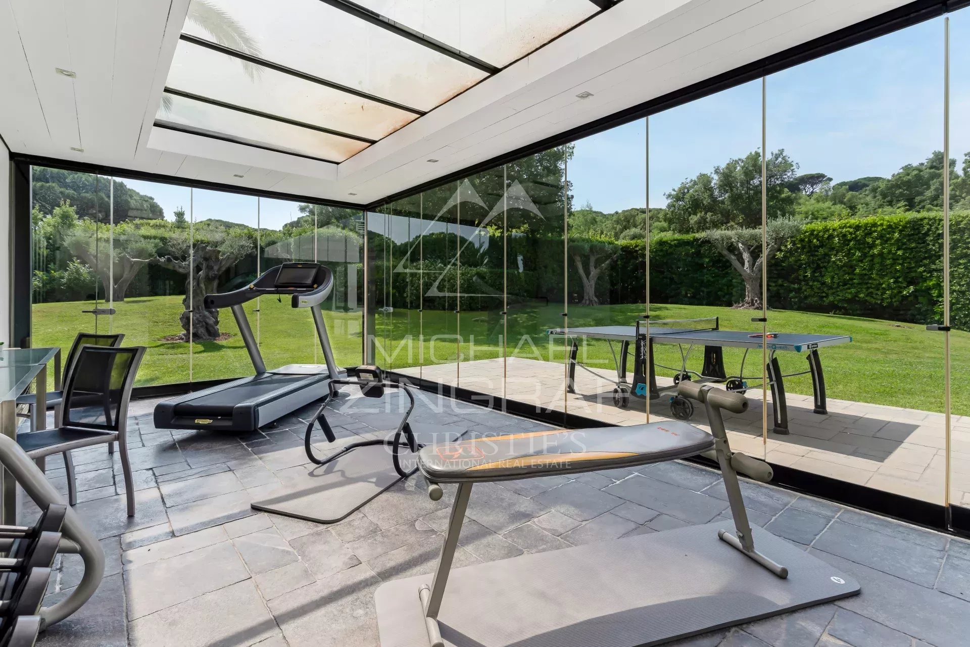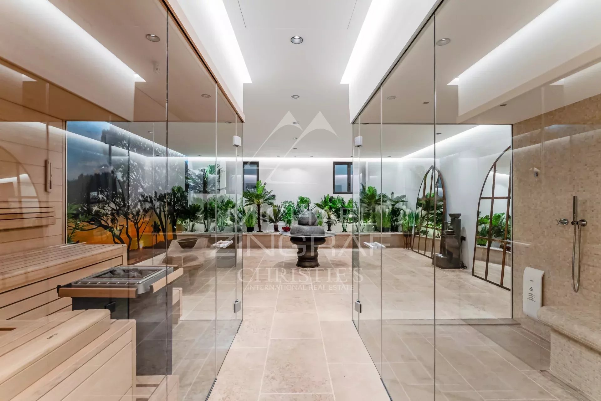 La première villa, se compose d'un grand salon, d’une cuisine professionnelle, avec un accès privatif(portillon), une salle à manger, 1 salle de sport, 1 très grande suite de maître à l’étage, vue mer sur la baie des Canoubiers, avec belle salle de bain ouverte, au RDC, 3 chambres double en suite, avec chacune leur salle de bain, en sous sol, buanderie, frigos pro, stockages, monte charge, direct office cuisine.