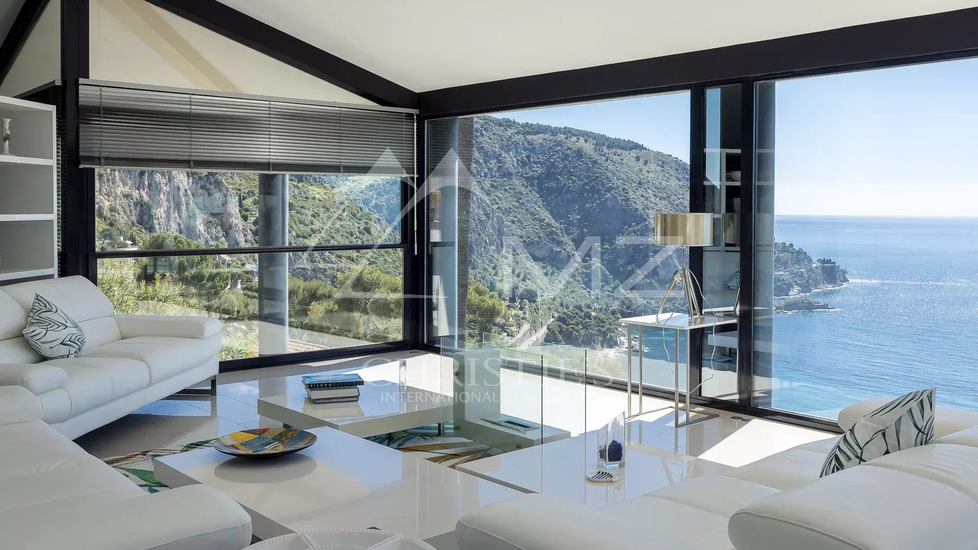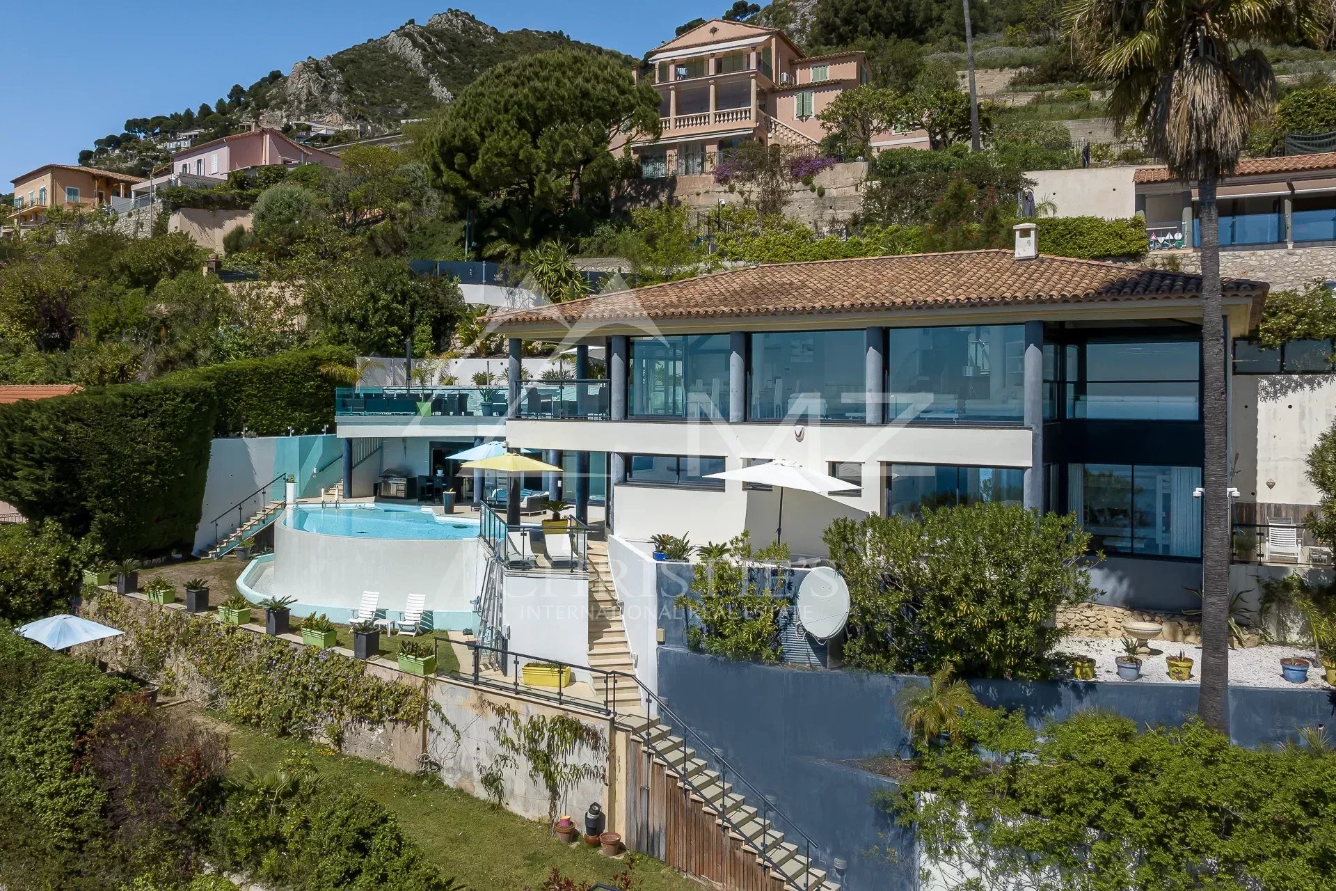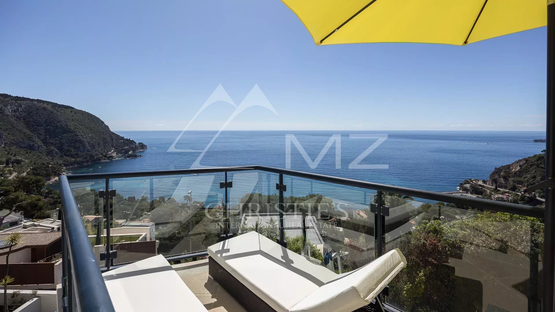 Située à Eze Bord de Mer, cette villa contemporaine offre un cadre de vie idéal pour une famille en quête de confort et d’élégance. À seulement 10 minutes de Monaco, elle bénéficie d’une vue panoramique sur la Méditerranée, tout en offrant un environnement paisible à proximité des commodités.