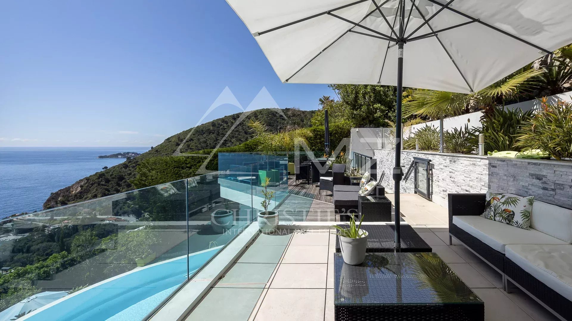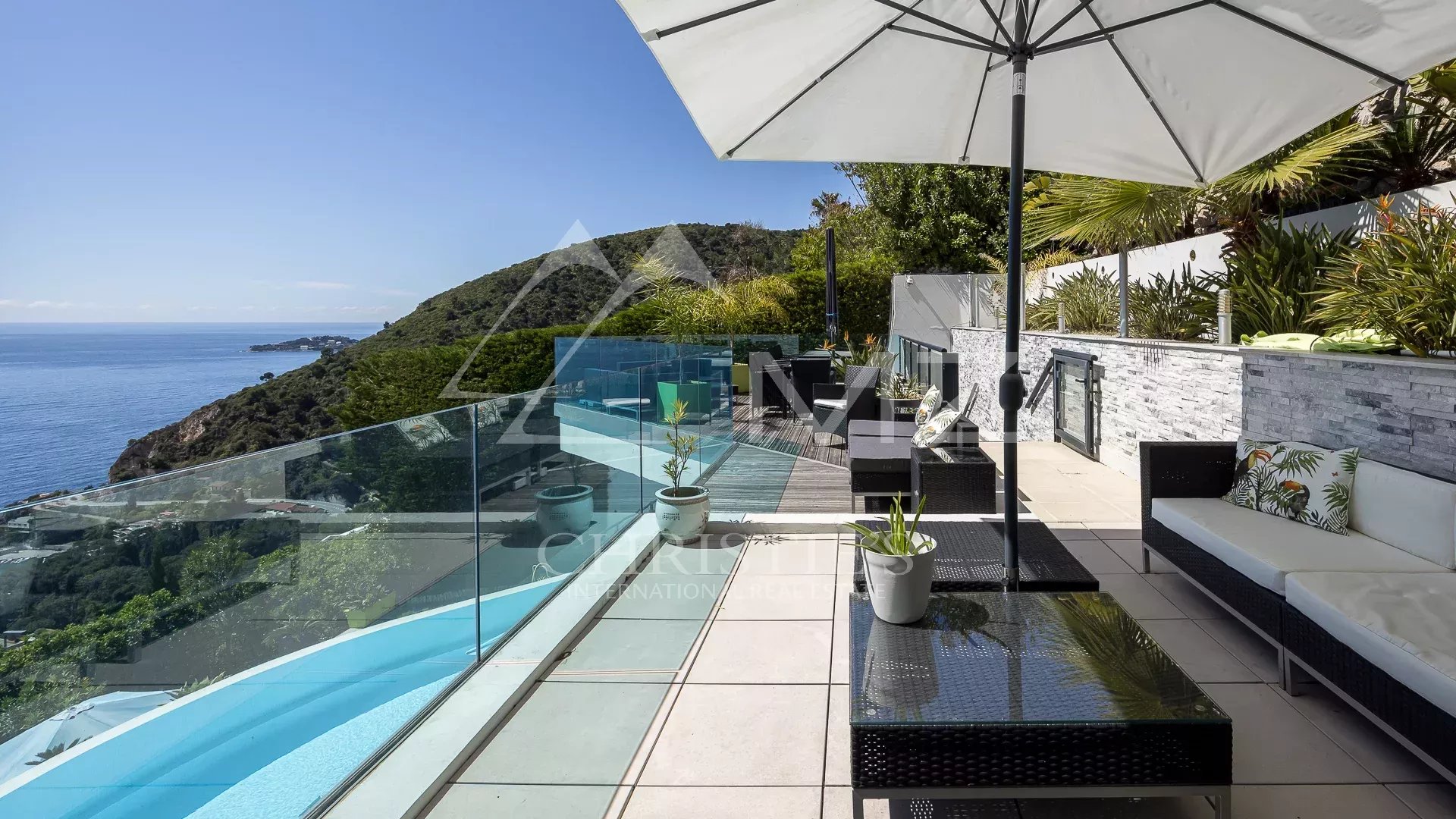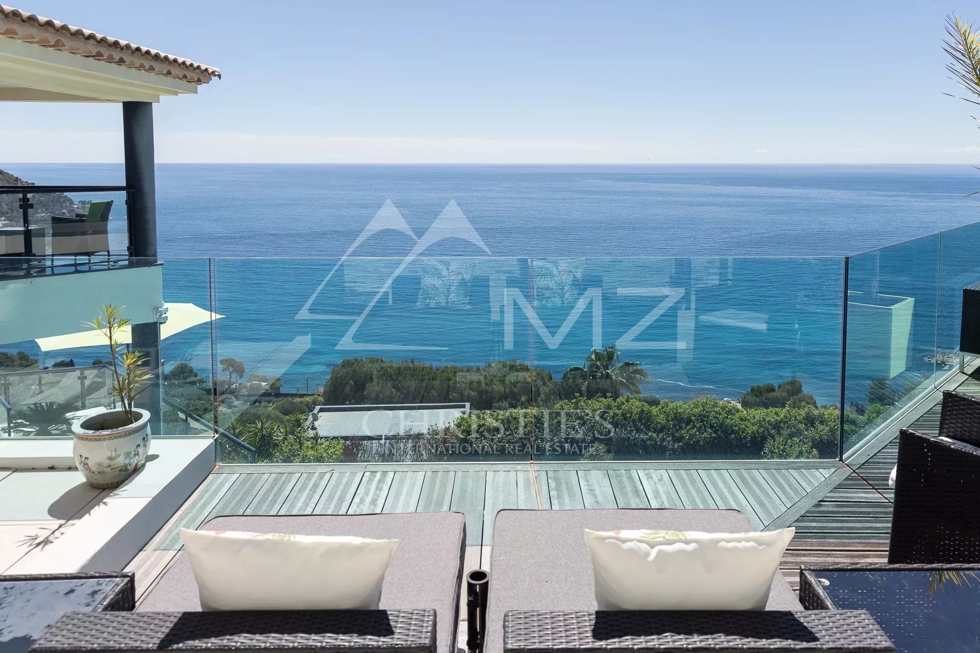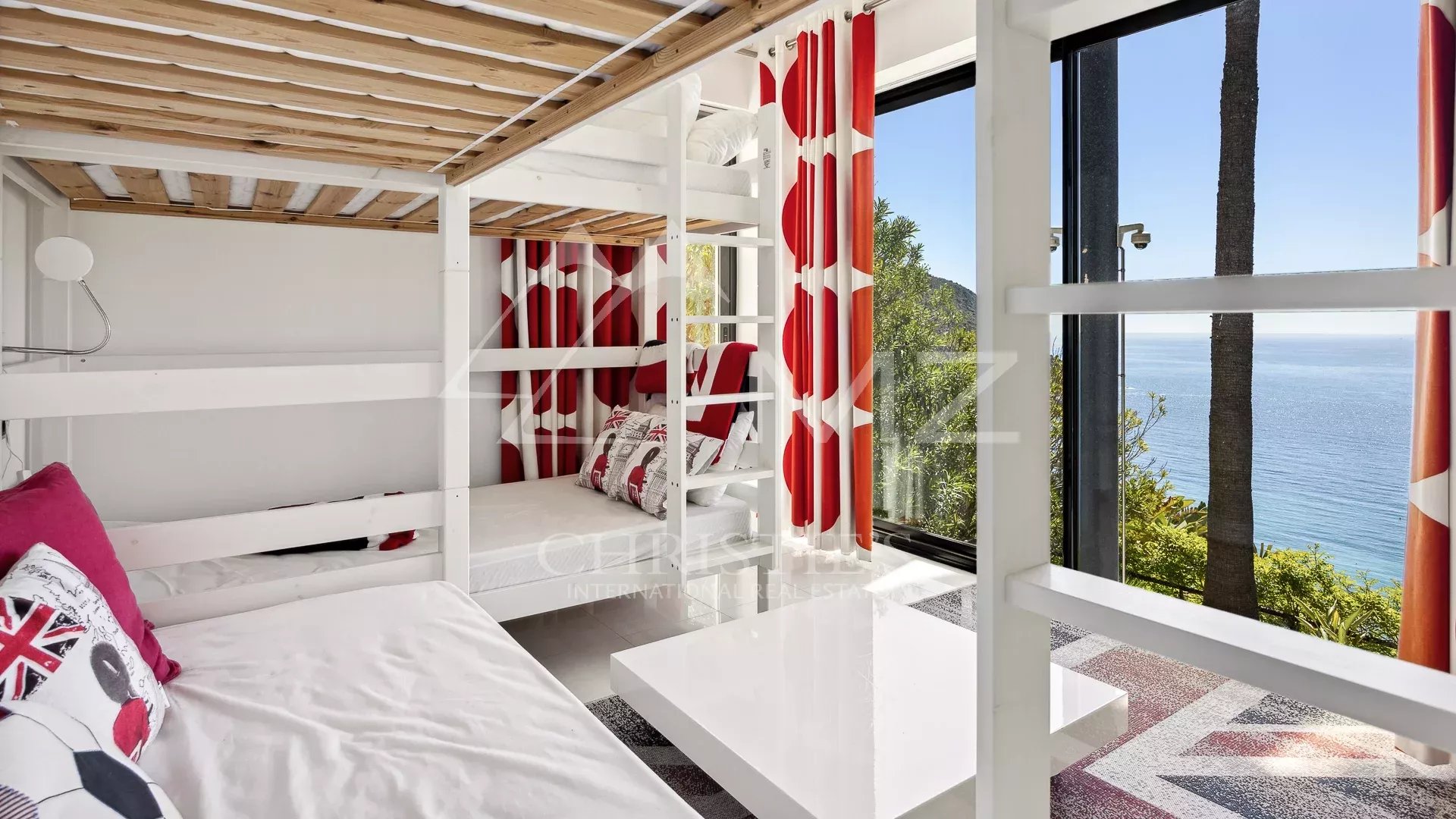 Située à Eze Bord de Mer, cette villa contemporaine offre un cadre de vie idéal pour une famille en quête de confort et d’élégance. À seulement 10 minutes de Monaco, elle bénéficie d’une vue panoramique sur la Méditerranée, tout en offrant un environnement paisible à proximité des commodités.