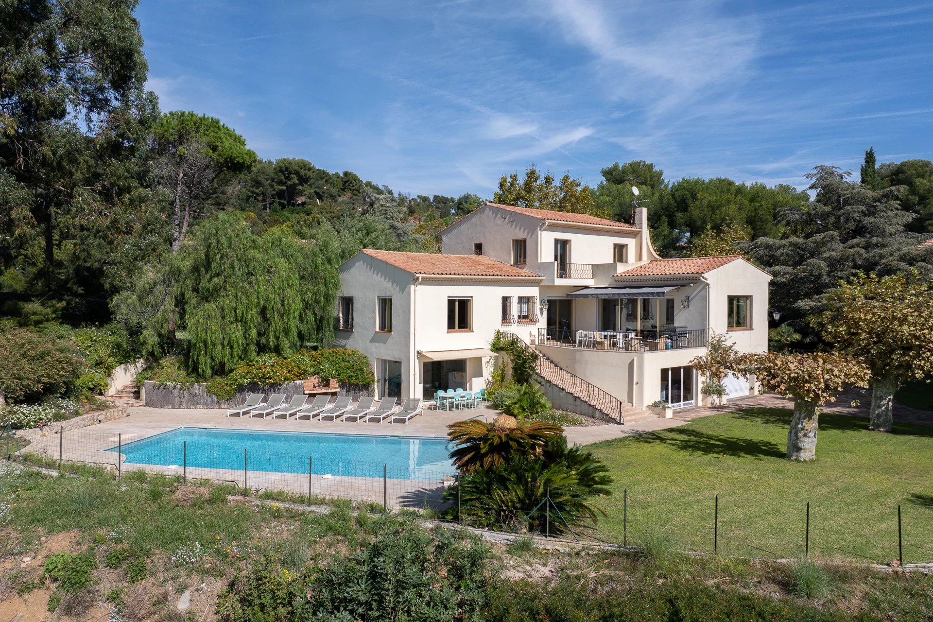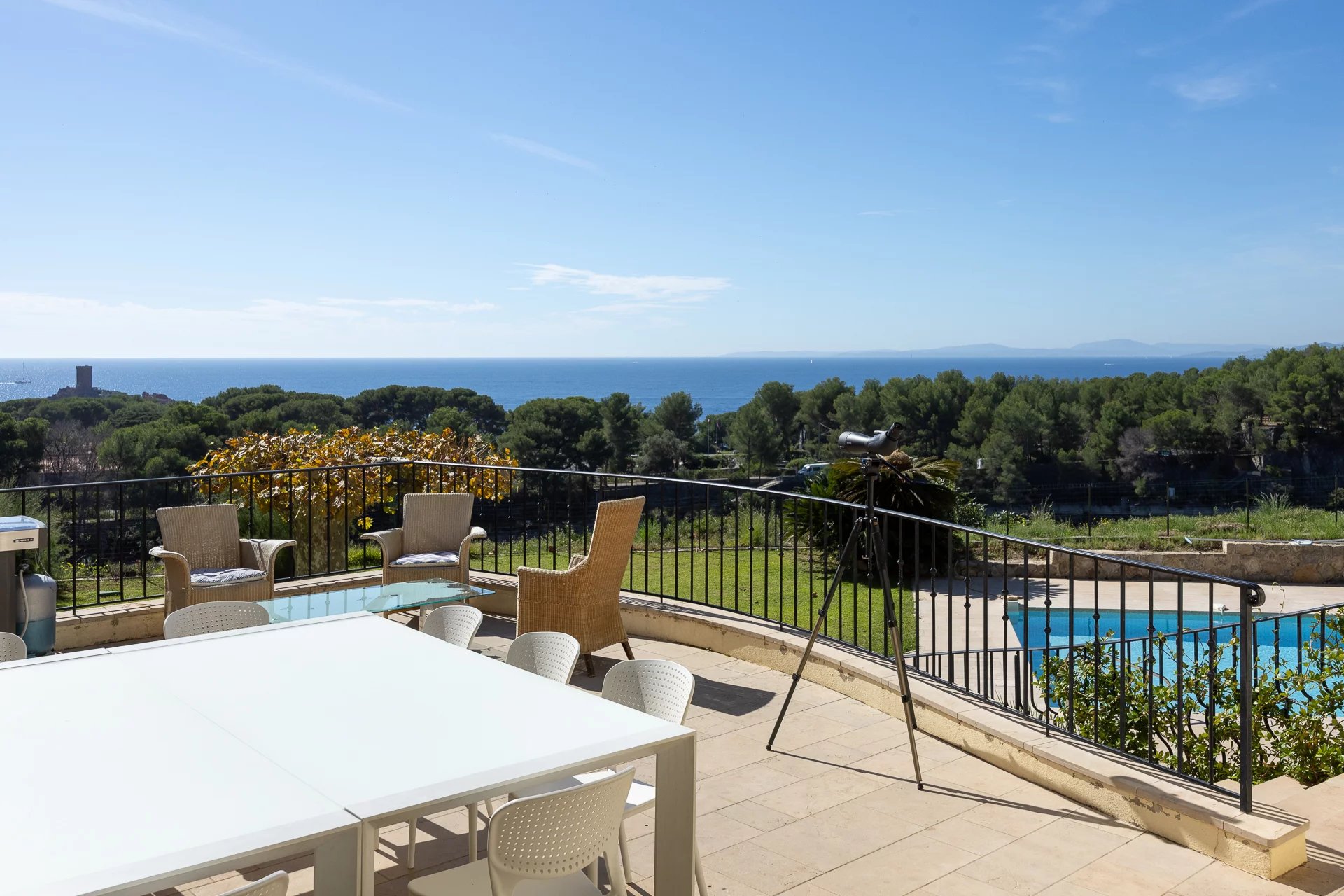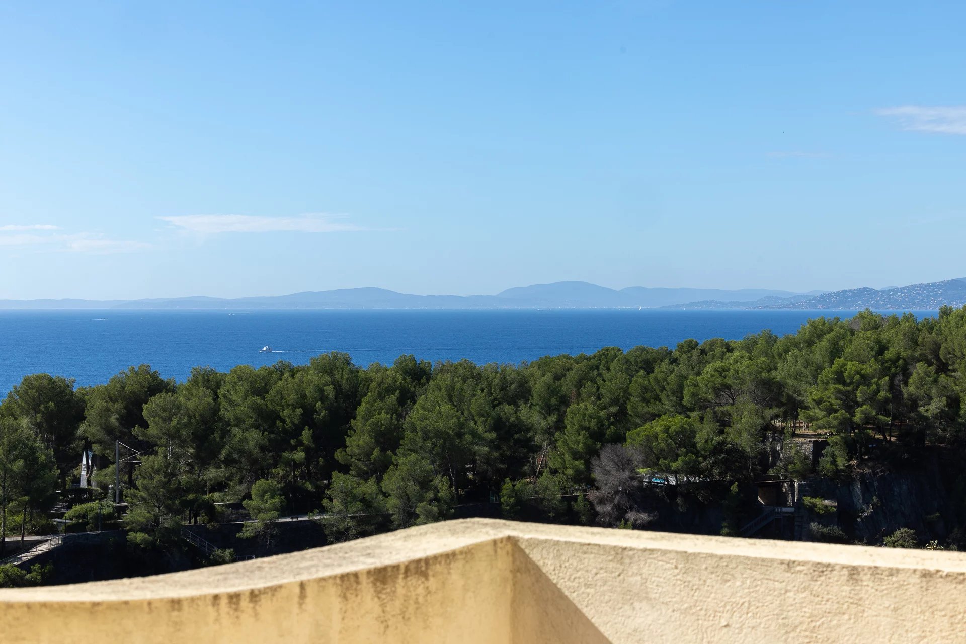 Exceptionnelle propriété familiale d'une surface totale bâtie de plus de 400 m2, exposée plein sud, et offrant une splendide vue mer de la pointe du Dramont avec la fameuse Île d'Or, jusqu'au golfe de Saint-Tropez.
